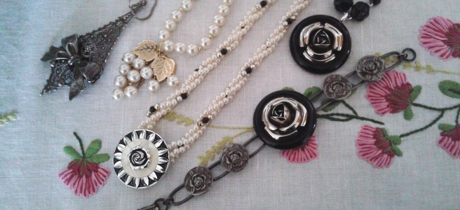 Ytterligare ett halsband, detta gjort från ett hänge som tappat delar, en brosch och en halskedja.