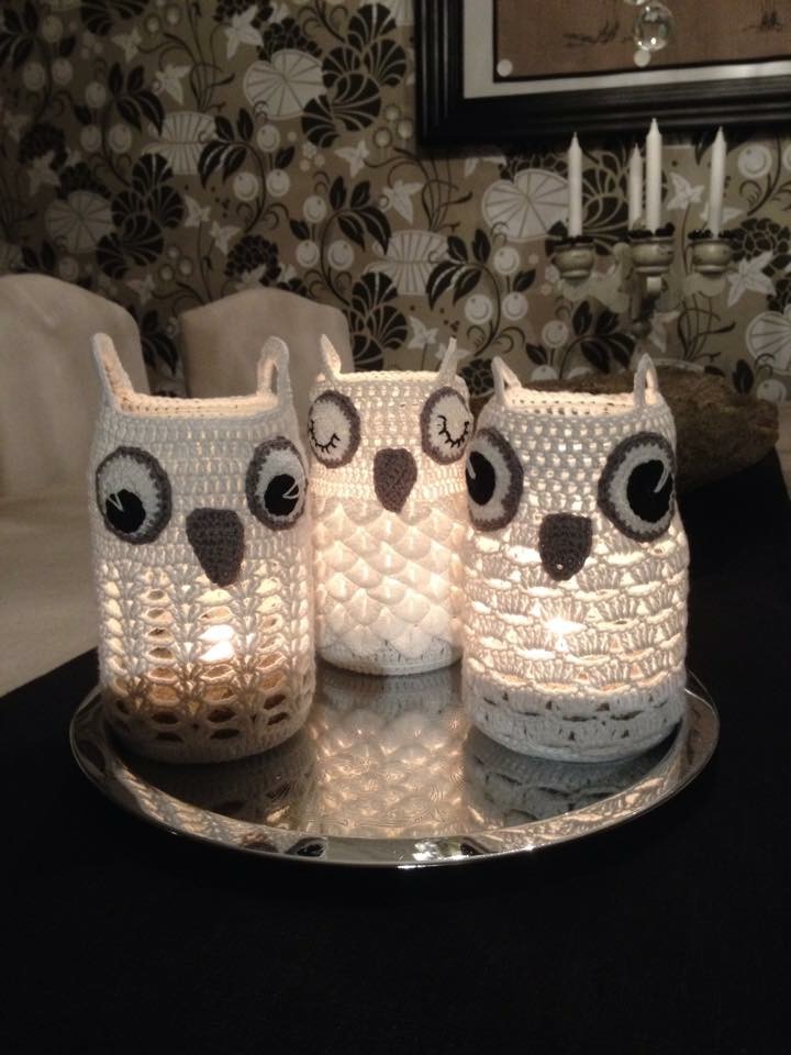 Har sett så många bilder på fina virkade ljuslyktor där man virkar som ett överdrag till glasburkar men inte hittat något jag tyckte var fint förrän nu. Det här tyckte jag var stilrent och fint – och enkelt, du hittar mönstret här http://ianyckelpiga.blogspot.se/2011/01/monster-till-ljuslyktor.html.