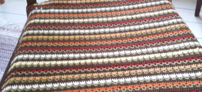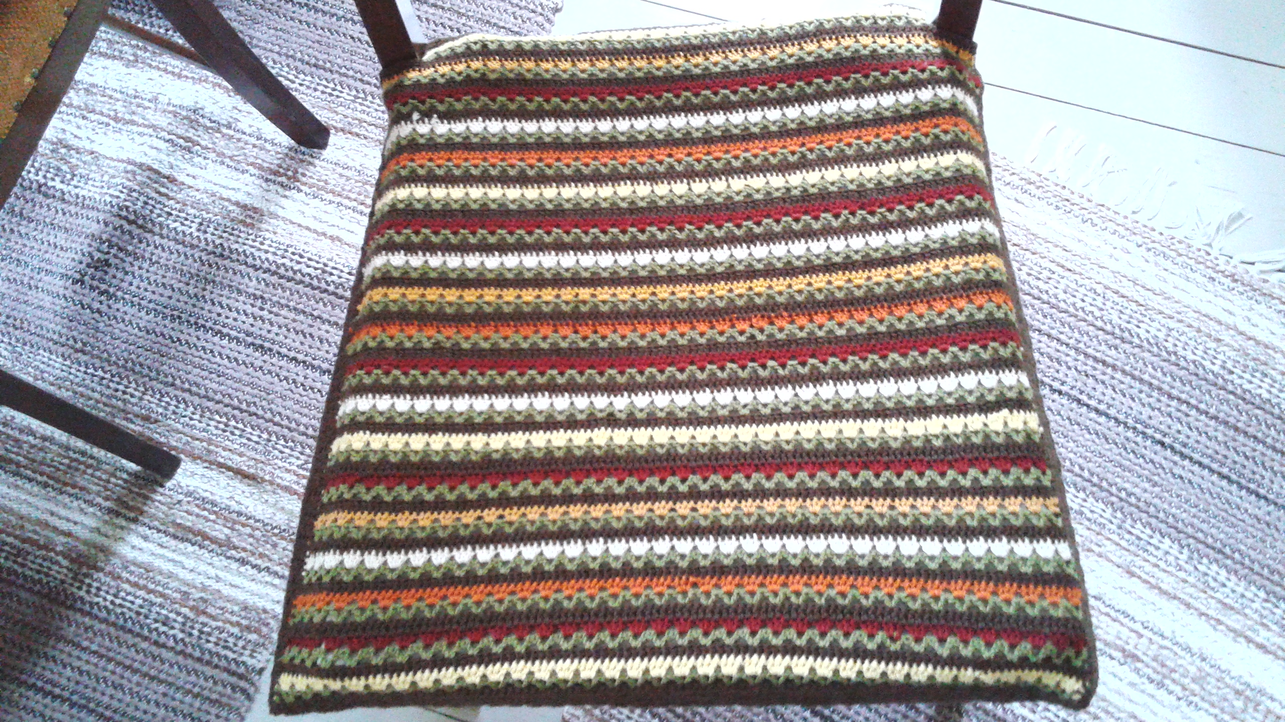 Mitt vinterprojekt till Almelund (förutom att sy gardiner av gamla lakan med spets) är att virka stolsöverdrag till de olika stolarna med olika dynor som vi har där. Jag har testat med olika mönster men inte tyckt att någon av dem blev bra förrän jag hittade det här ”tulpanmönstret”.