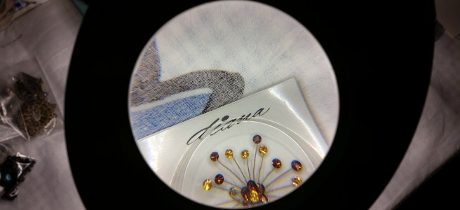 Bästa julklappen denna jul var min nya arbetslampa till verkstan. Har suttit och kisat med en vanlig skrivbordslampa och det har inte alltid varit så lätt, särskilt när det är något pilligt. Men nu har jag både ljus och förstoring – som jag dessutom kan sitta och arbeta under utan att behöva hålla i något. Känner mig extremt nöjd!