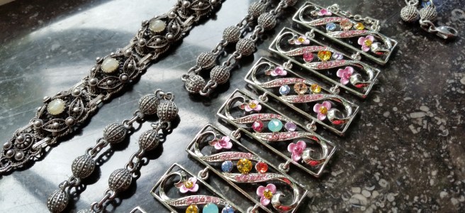 Dags att sortera och fotografera lite smycken för att lägga ut på Tradera. Lite hjälpmedel får man ju ha, får bara inte bli för konstigt – det viktigaste är ju trots allt att man ser smycket ordentligt! När man köper på nätet och inte kan se smycket i verkligheten tycker jag att det är väldigt viktigt att man får en bra bild av det så man hellre blir glatt överraskad när det kommer hem i lådan och inte tvärtom om…