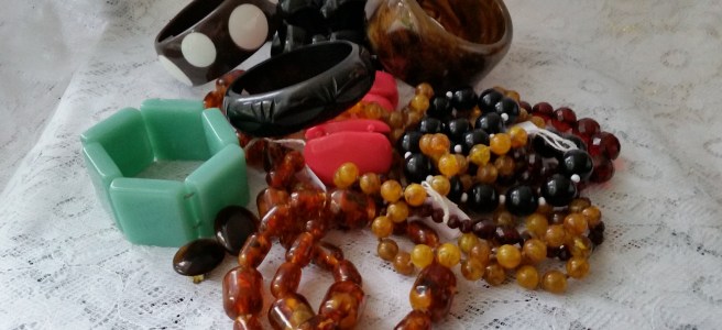 Idag har jag inhandlat en ”goodiebag” på Erikshjälpen och på Kupan. Har också plockat fram och börjat fotografera det som blivit inhandlat i sommar. Det roliga – och samtidigt mindre bra för plånboken – är att plastsmycken, särskilt 50/60-tal, finns det gott om… och eftersom jag inte bestämt mig för någon särskild inriktning så blir det just nu allt möjligt. Får nog så småningom skaffa mig någon slags struktur på samlingen. Men samtidigt är det mycket som också är billigt eftersom det inte är gigantiskt många som samlar ju st inom detta område.
