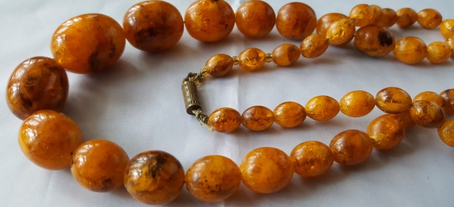 I alla fall såg jag ett avsnitt igår och lärde mig ett nytt sätt att skilja på plast och bärnsten, vilket kan vara VÄLDIGT svårt. Jag har redan lärt mig att bärnsten faktiskt luktar kåda (det är ju gammal kåda) om man värmer den men igår lärde jag mig att man också/eller kan testa med Coca-Cola!