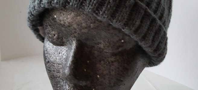 Jag stickar på fri hand och hittar på allt eftersom men grunden är resår ca 10 cm för uppvik sedan ett mönster där jag stickar alla varv räta utom var tredje maska som är rätt på rätsida och avig på avigsidan. Sedan tar jag in på fyra ställen någorlunda jämnt fördelat. Jag stickar hela stycket rakt och sedan tar jag in rätt mycket med en gång så får man inte mössan så toppig.