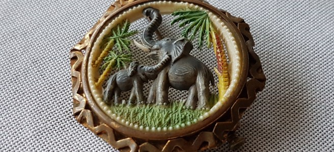 Elefanter kan man ju aldrig få för många… alla i celluloid, den högra ”siloutte-broschen” från 20/30-tal, de andra två troligen 40/50-tal.