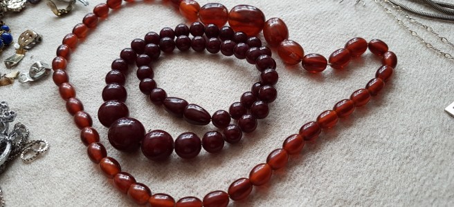 Det som inte var riktigt lika roligt var att snöret gick av, suck, blir till att trä om. Men så är det ju ibland, det här är halsband som är från 30/40-talet så att snöret är skört är inte direkt konstigt.