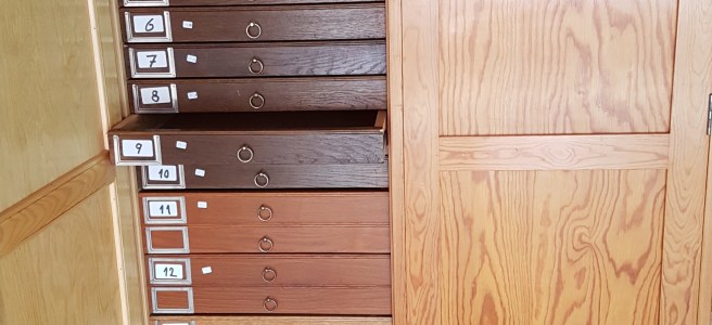 Nu har jag – äntligen – fått hem mitt stora skåp som är tänkt att hysa samlingen. Det är ett gammalt skolskåp men jag vet inte riktigt vad man förvarat i det. Det stora problemet blir nog att få in det, det huserar just nu i garaget, det är tungt även utan lådorna. Trodde inte det skulle vara så tungt, det är i furu, men det var betydligt tyngre än jag trodde.