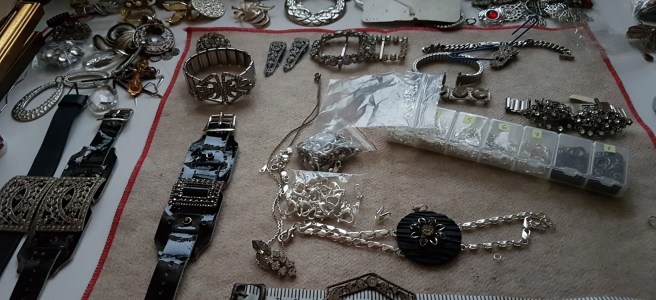 Man tycker att det vore enkelt att bara åka dit och ställa sig men det är massor av prylar som ska med (och hem igen, åtminstone delar av det) om det ska se inbjudande ut. Visst skulle jag kunna bara lägga upp mina smycken rätt upp och ner på ett bord men det skulle ju se otroligt trist ut…