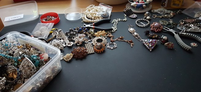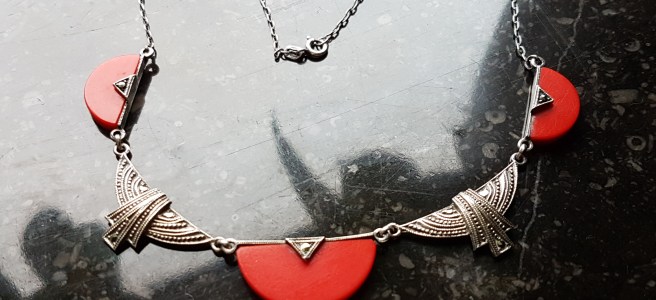 Som vanligt försöker jag slå en lans för att det tidigt fanns smycken i plast och att – inte minst viktigt – äldre plast är INTE samma sak som bakelit…