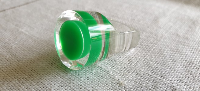 Äntligen har jag lyckats få tag på en ring av Siv Lagerström utan att bli ruinerad! Visserligen med en liten skada men dock. De finns inte särskilt ofta på marknaden och är oftast väääldigt dyra. Jag har inte mycket ringar i samlingen, dels är de svåra att hitta och dels oftast svåra att datera. Men som samlare av äldre plastsmycken så måste jag ändå äga åtminstone en av hennes ringar som är så väldigt typiska 60-tal och popkonstens stora era.