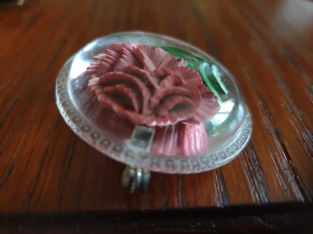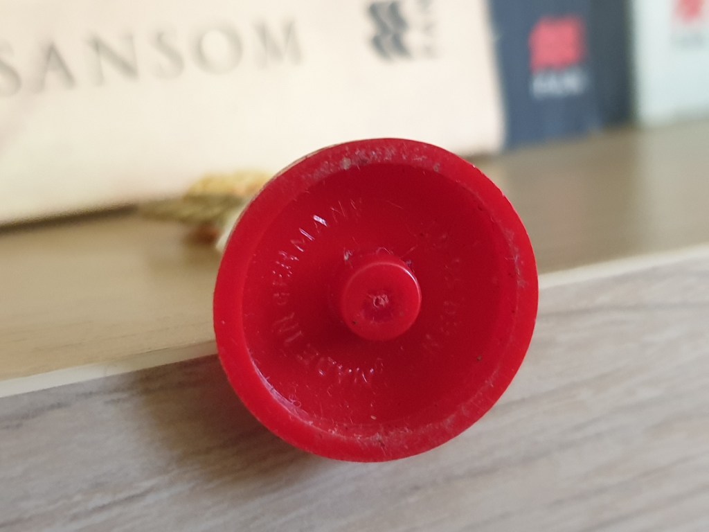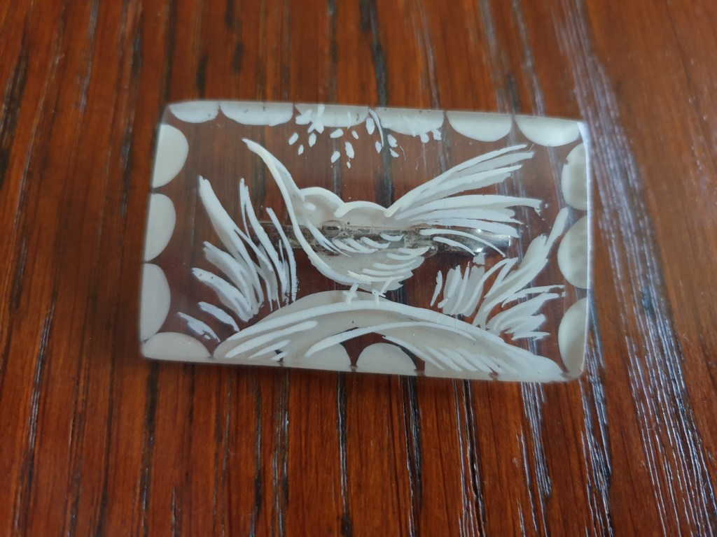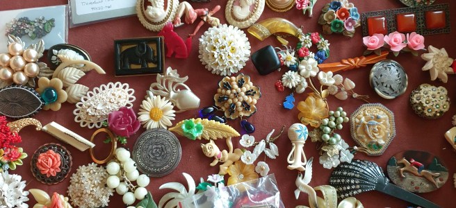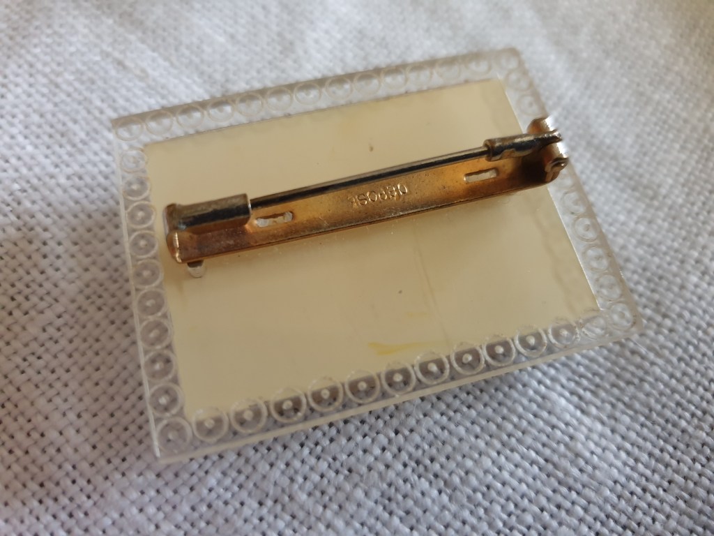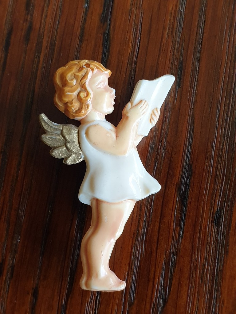 Jag har kommit så långt att de är i celluloid och från Tyskland, alltså inte Västtyskland, vilket innebär att de är före andra världskrigets delning av Tyskland. Så någonstans 30/40-tal. Dessa broscher är inte märkta men jag har sedan tidigare två av dessa änglar med fot som står i min bokhylla och de är märkta Made in Germany.