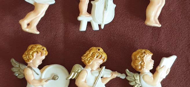 Blivit ägare till en urcharmig liten ängla-orkester. Försöker ta reda på om det kan finnas fler varianter med andra instrument men det är inte helt enkelt.
