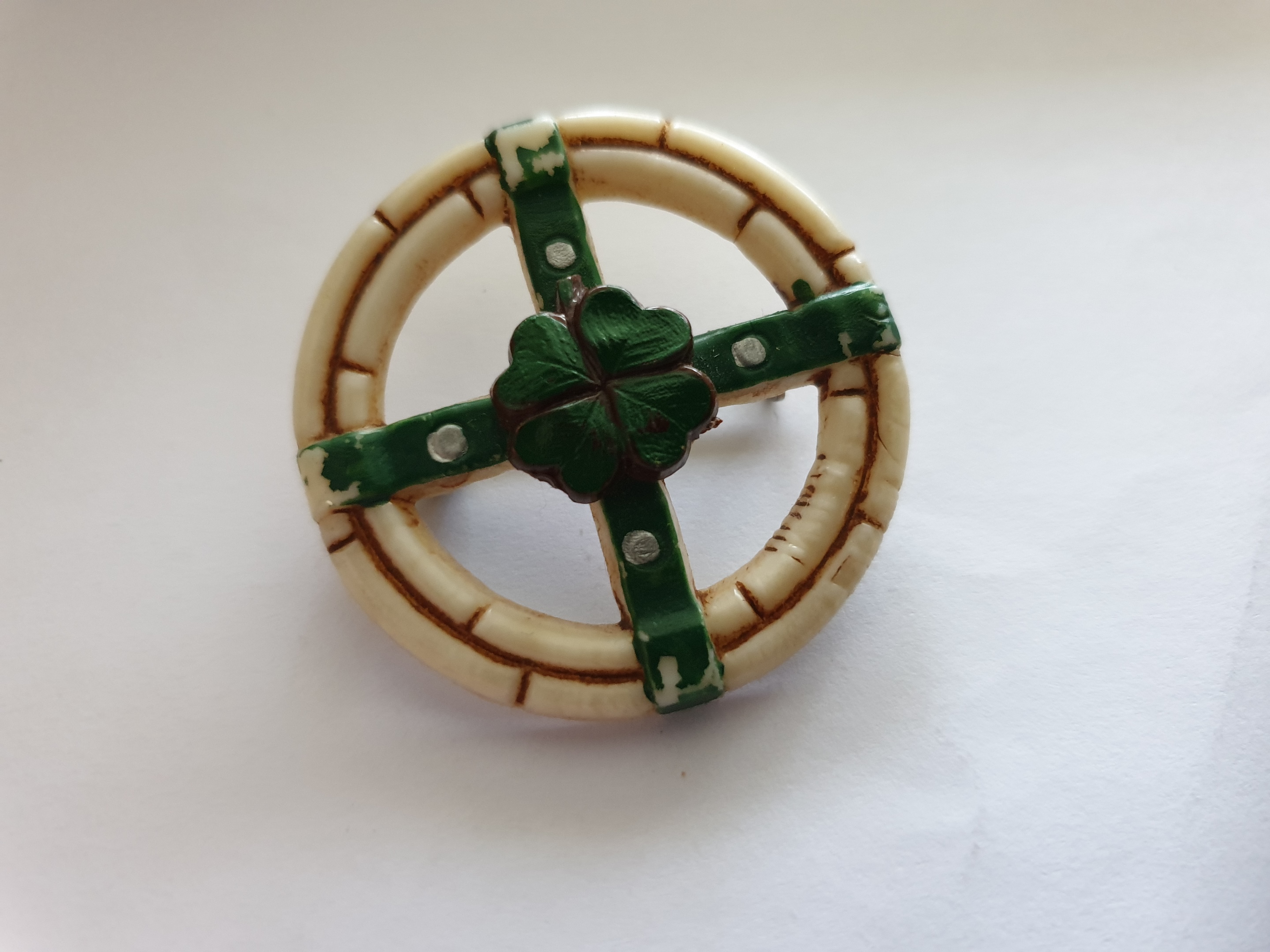 Så till sist några som är souvenir-broscher utan att det står på dem, de här två är rätt självklara var de kommer ifrån om man har någon som helst relation till Irland. Men som sagt, egentligen skulle man nog kunna göra ett rätt kul eget samlarområde av detta. Kan tänka mig att det redan finns samlare därute som just samlar den här typen av broscher oavsett material. Har sett att samma typ av broscher finns att hitta i metall.