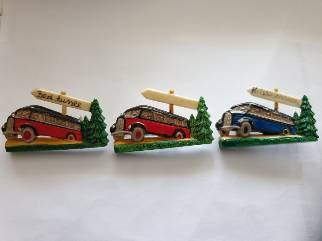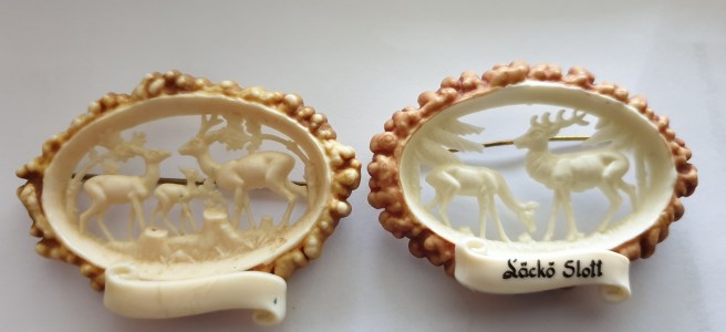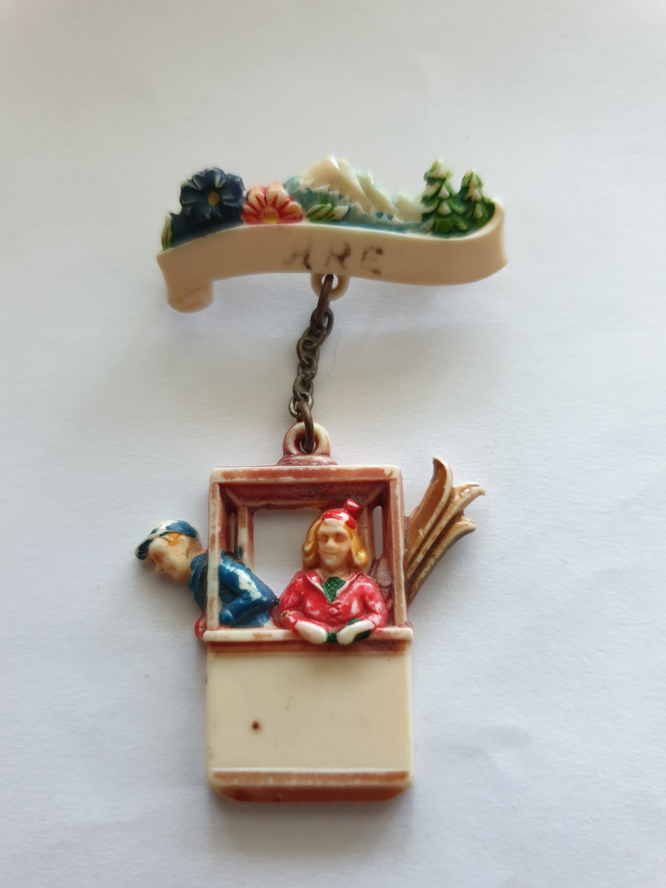 Vad jag har kunnat klura ut fanns dessa broscher under tiden mitten 40-talet och under 50-talet för att sedan i princip försvinna helt, i alla fall i plast – andra material vet jag inte lika mycket om. Min gissning är att många av dessa har sitt ursprung och sin tillverkning i Tyskland, men den gissningen bygger enbart på att många jag hittat är från tyska orter, de kan lika gärna producerats någon annanstans och ”bara” fått stort genomslag i Tyskland.