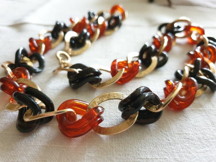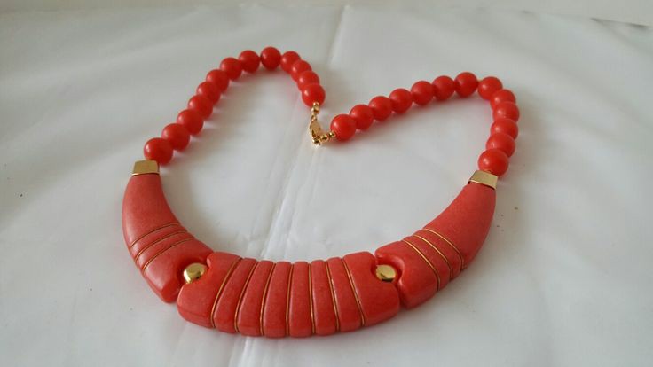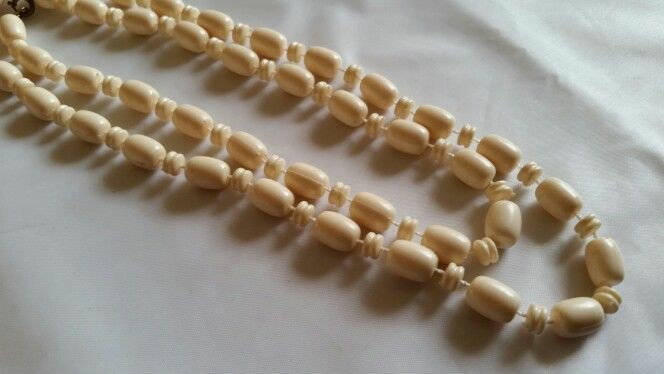 70-talet. Nu blir färgerna svagare, lite mer pastellfärger än de starka färgerna på 60-talet. Ofta är pärlorna gjutna på snöret istället för trädda, man kan hitta det även på 60-talet men på 70-talet blir det väldigt vanligt. Materialen blir ”billigare” och det syns och känns. Självklart finns det bättre kvalitet även på 70-talet men mycket av det man hittar idag är sådan smycken som såldes billigt i stora volymer. Precis som med andra smycken sålde Avon, Oriflame och andra som jobbade med hemförsäljning. Mycket långa halsband men även ”hundhalsbandet” kommer tillbaka i modet, nu gärna på ett sammetsband. På 70-talet blir det populärt med det egyptiska, lite billigare ” kopior” på smycken från 20-talet.