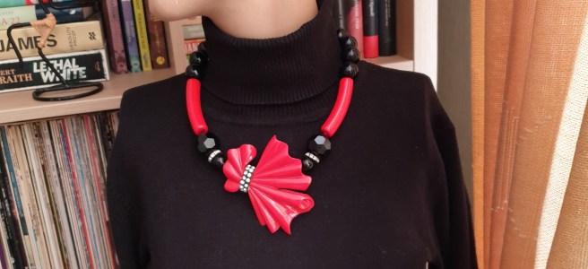 Jag är allmänt road av mode, framför allt äldre sådant, och ur det kommer min kärlek för äldre smycken. Men jag är också road av äldre kläder. Men när det gäller kläder (främst för att jag inte ska drunkna här hemma bland alla kläder, smycken och saker) så gäller principen att jag ska kunna bära dem.