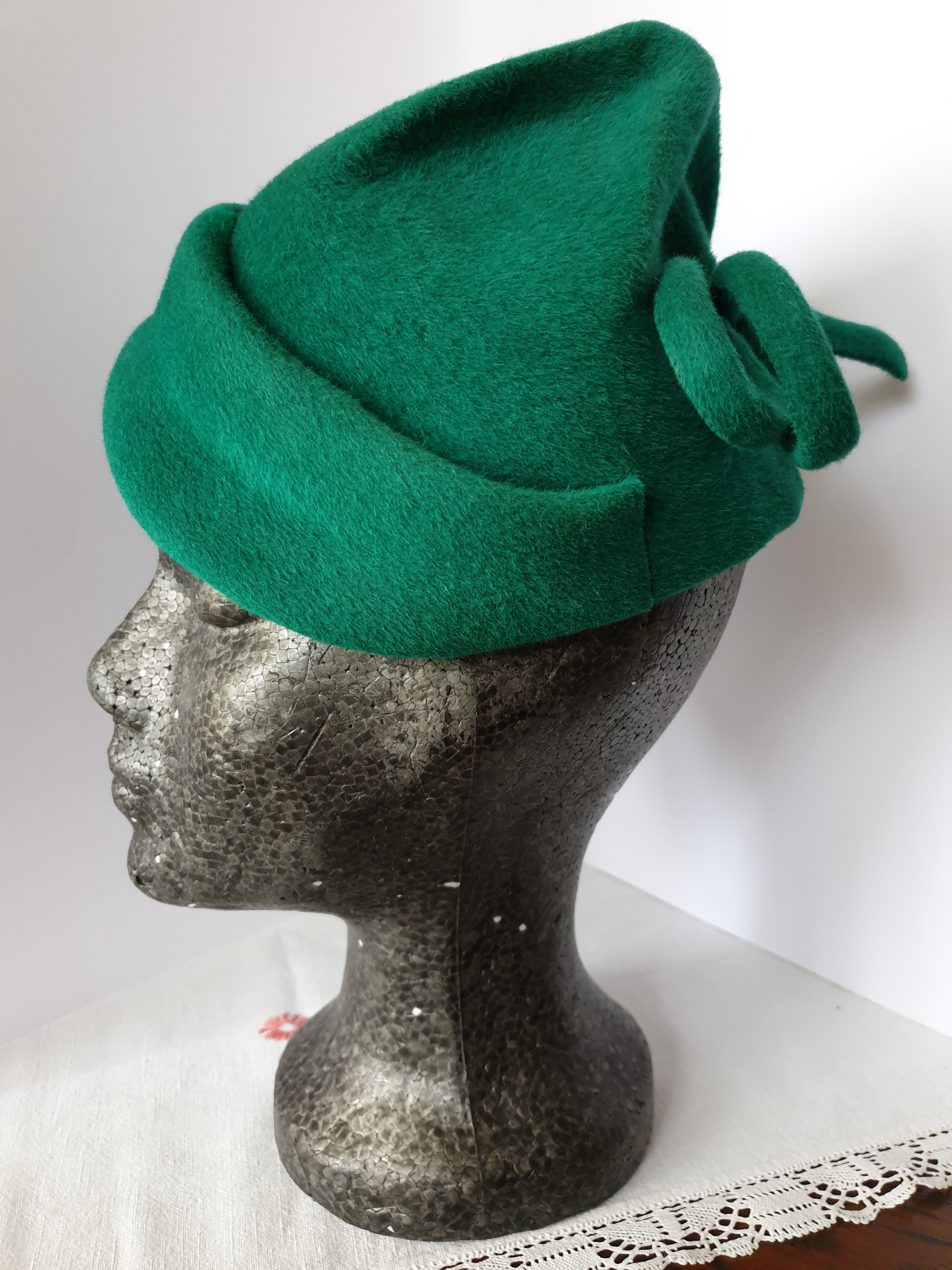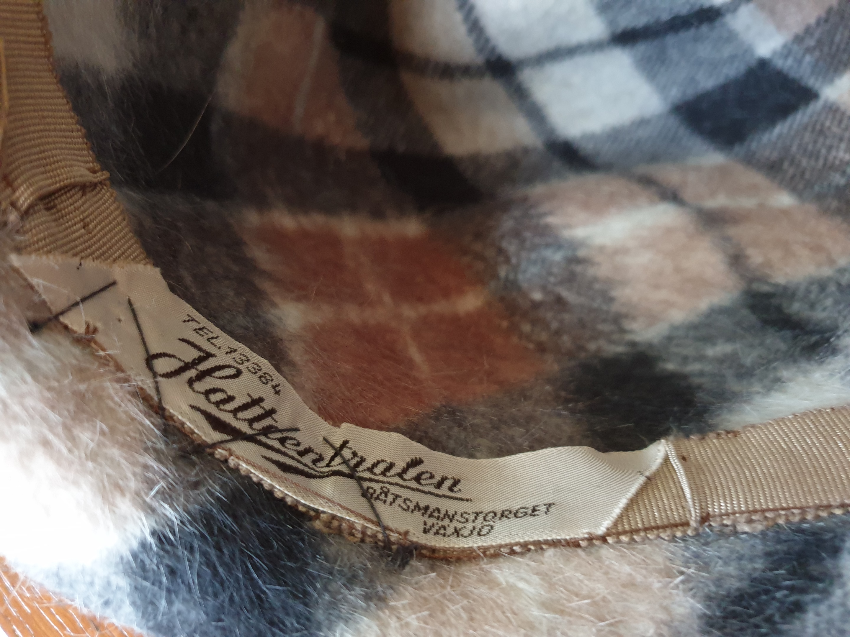 Tyvärr sträcker sig inte mina kunskaper till hattar så jag vet inte ålder på dessa, de har i alla fall alla etikett med fyrsiffrigt telefonnummer så jag gissar att de är 60-tal och äldre.