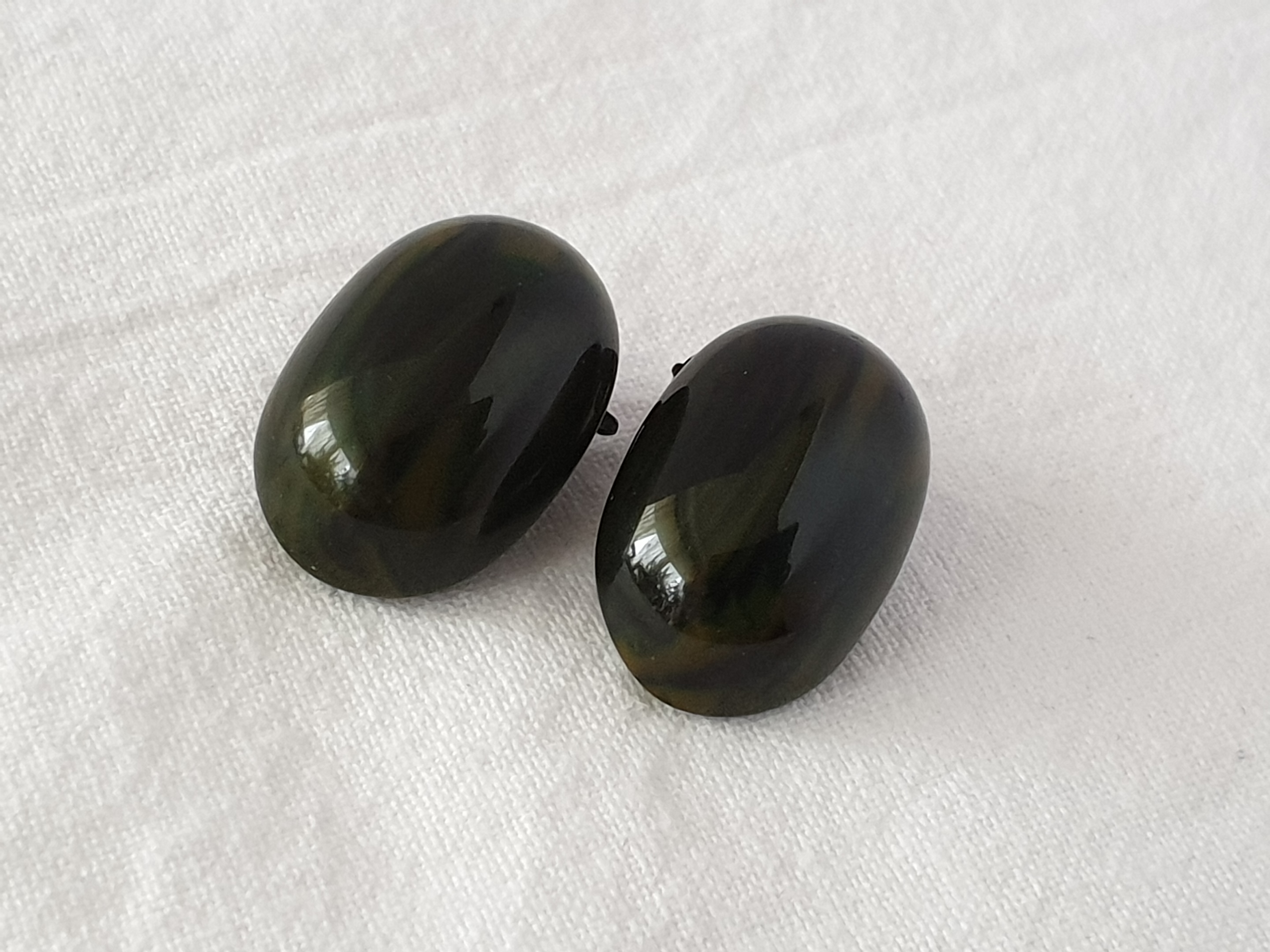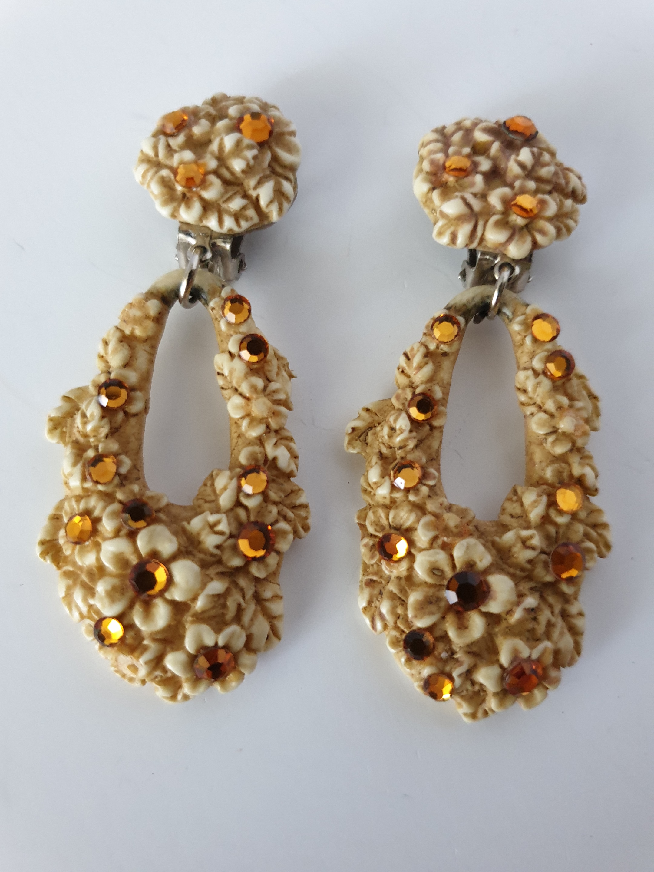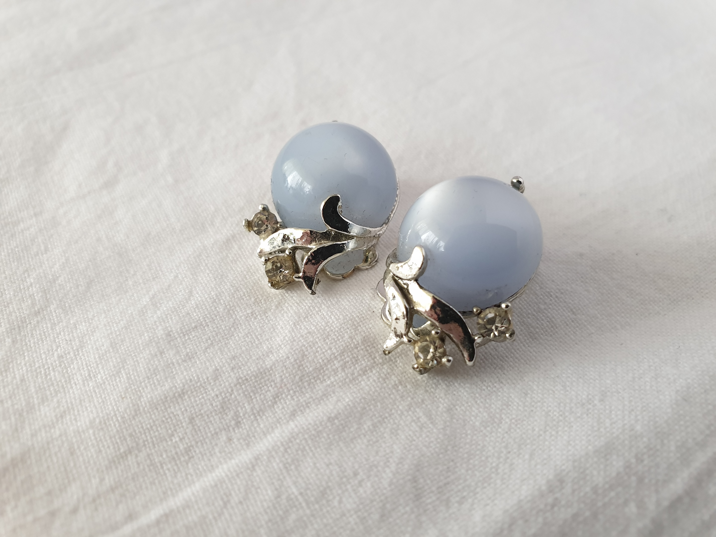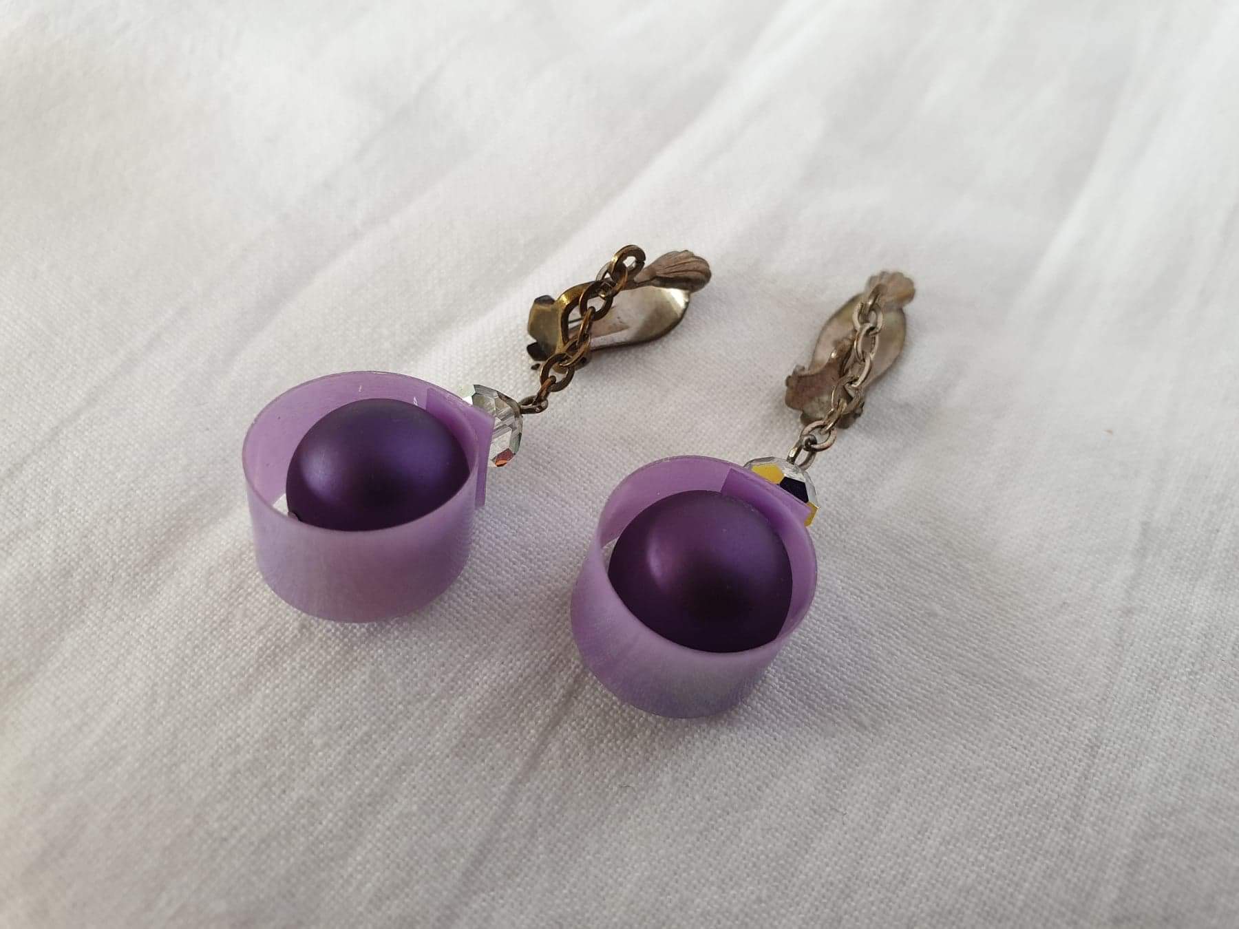 Så till sist några örhängen. De lila ser helt moderna ut men är 50/60-tal, mer 50-tal än 60-tal tror jag, och de högra med prickar köpte jag i tron av att de var 60-tal men nu när jag tittat på dem i verkligheten lutar jag mer mot att de nog är senare men jag ska undersöka dem lite mer innan jag bestämmer mig för att behålla dem eller inte.