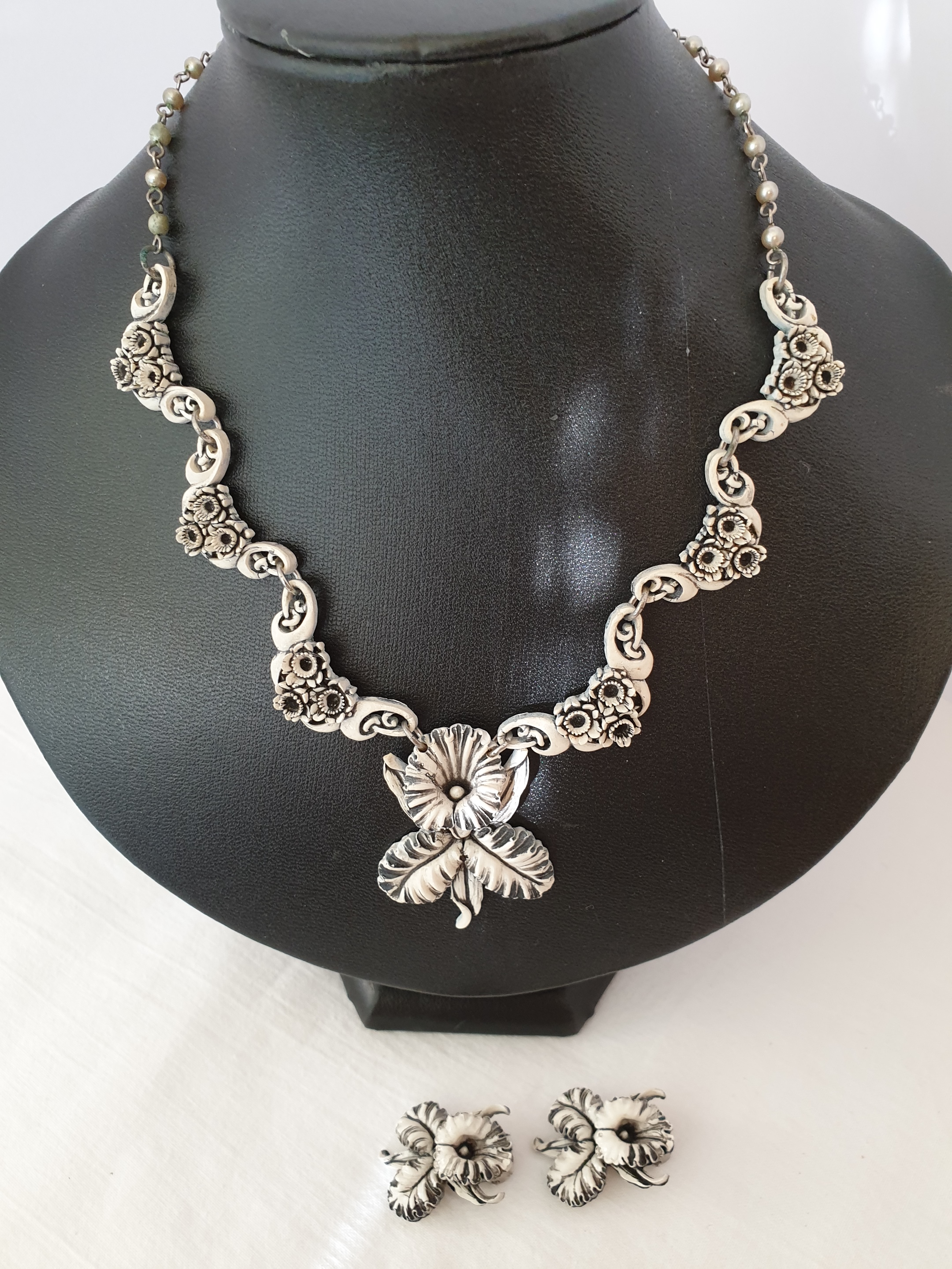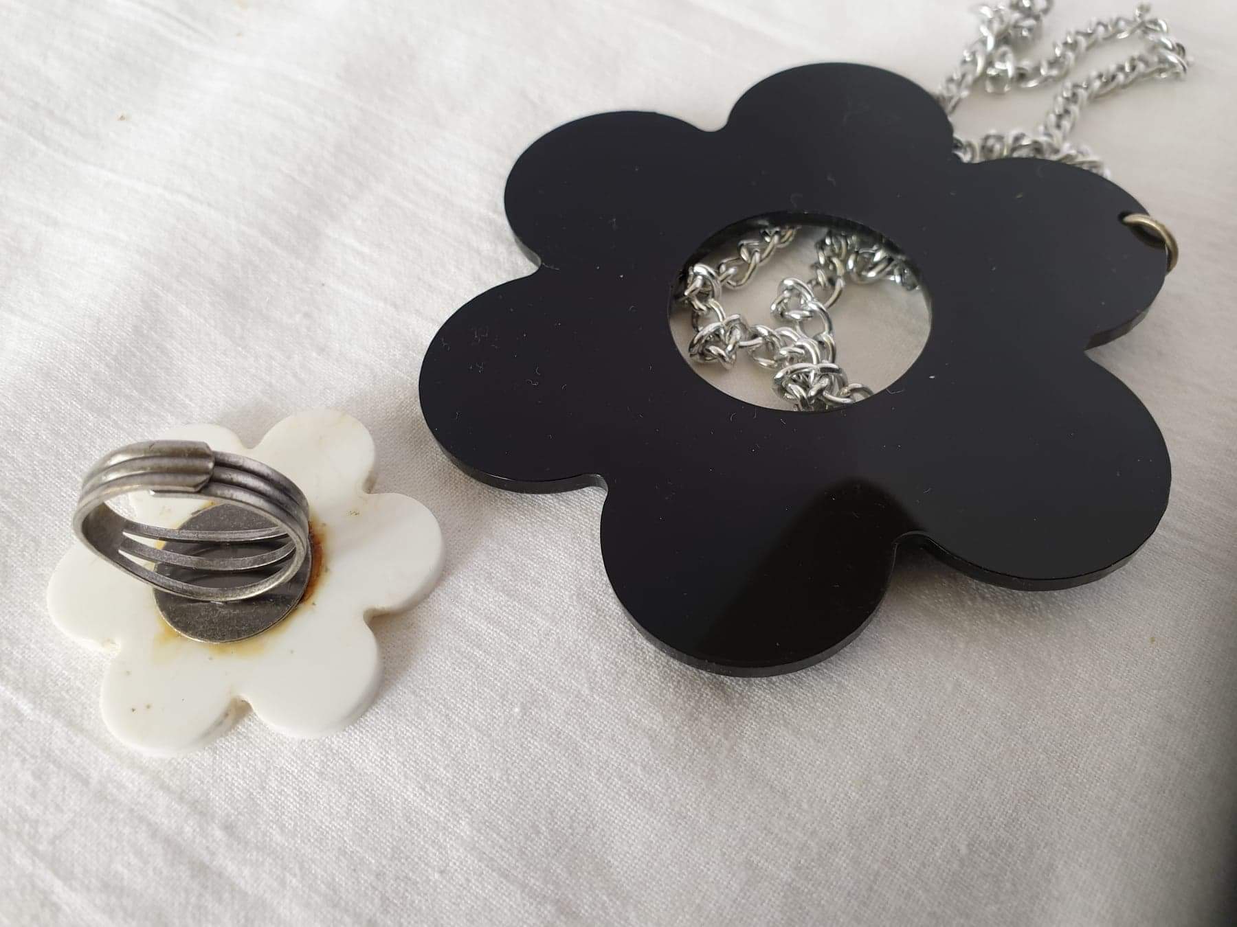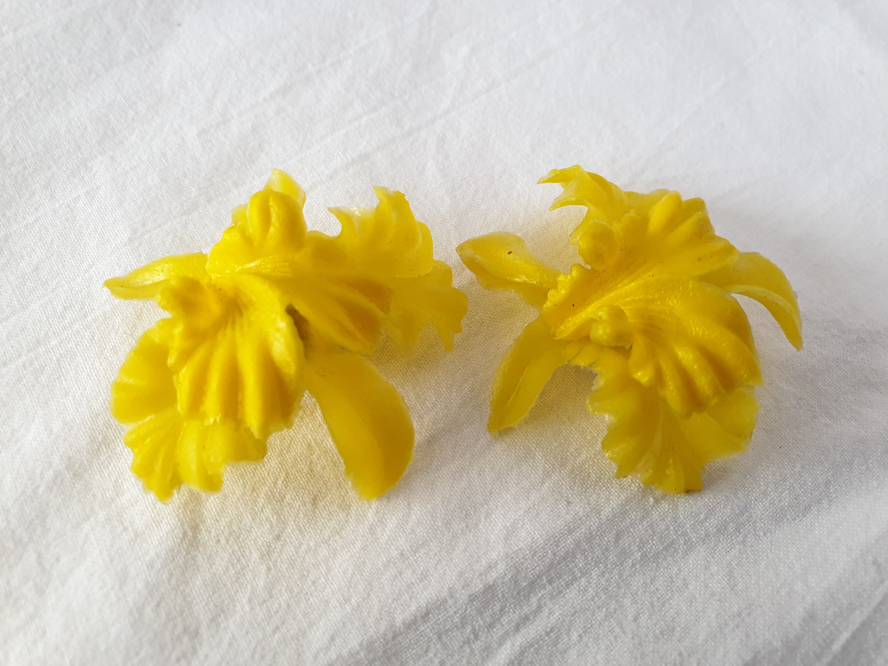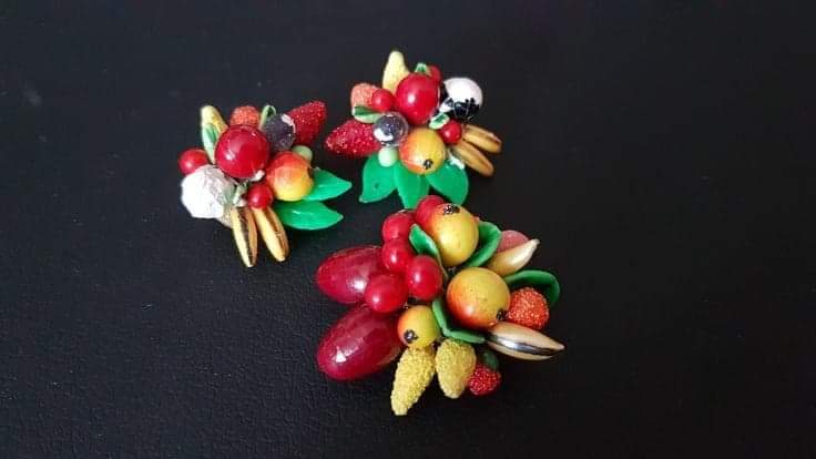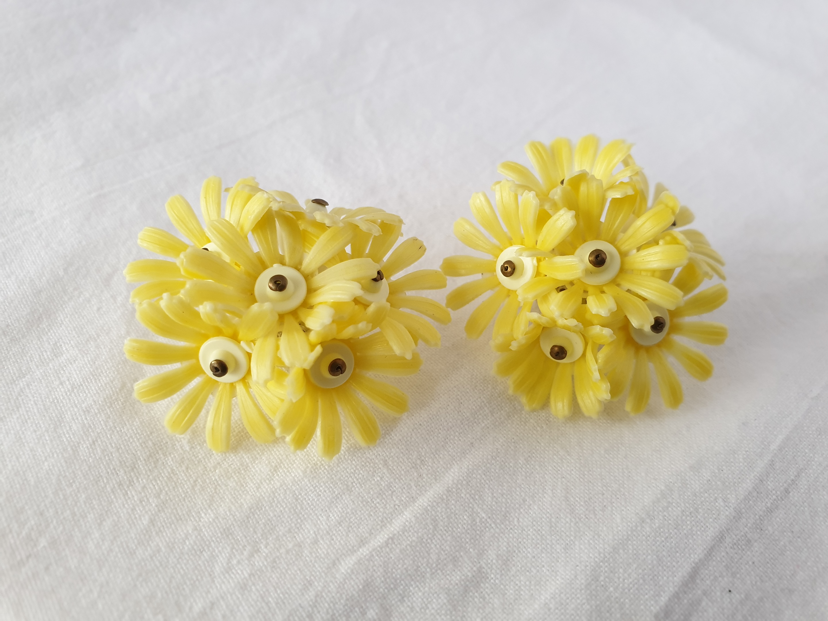 Så till sist några örhängen. De lila ser helt moderna ut men är 50/60-tal, mer 50-tal än 60-tal tror jag, och de högra med prickar köpte jag i tron av att de var 60-tal men nu när jag tittat på dem i verkligheten lutar jag mer mot att de nog är senare men jag ska undersöka dem lite mer innan jag bestämmer mig för att behålla dem eller inte.