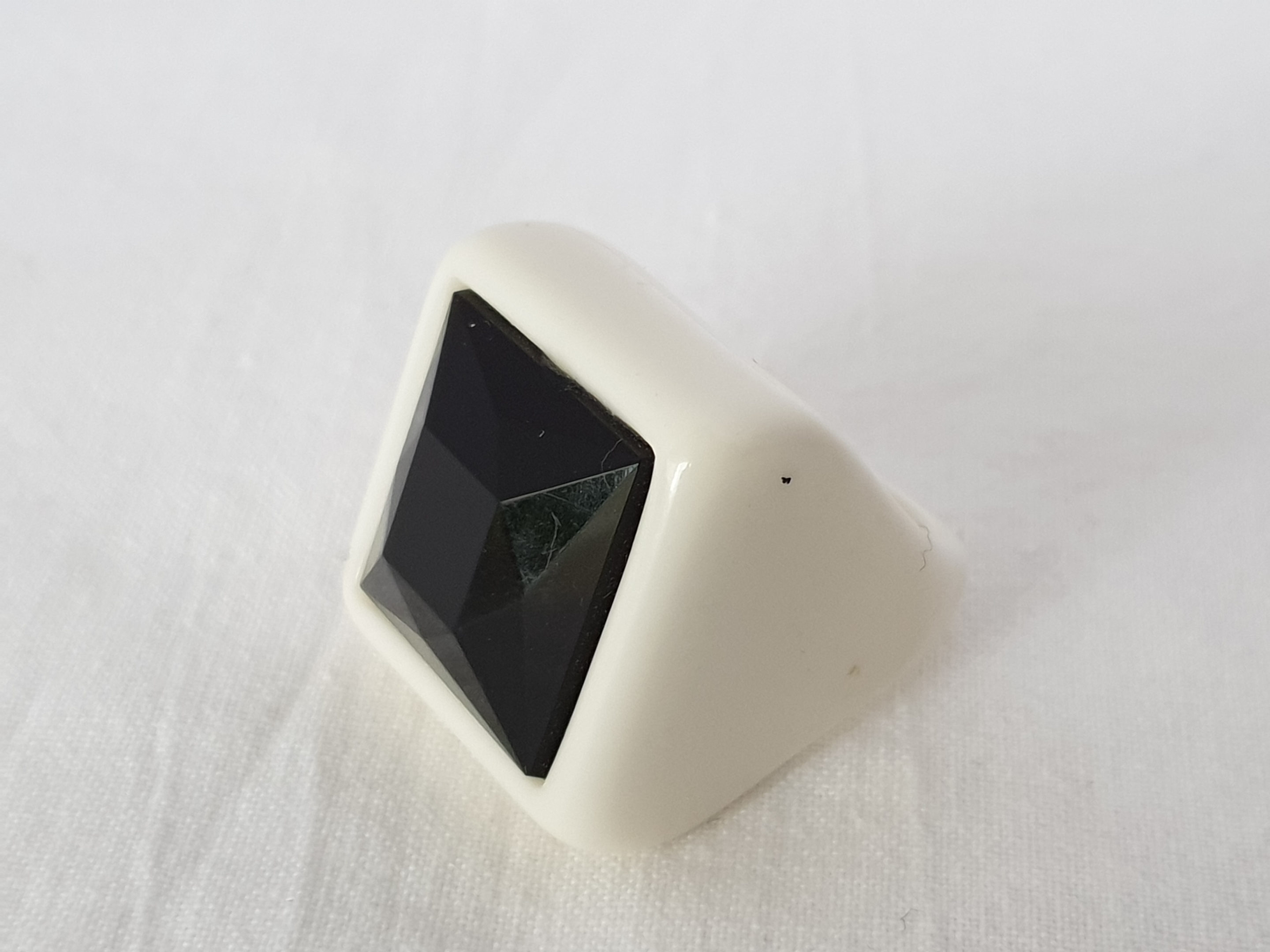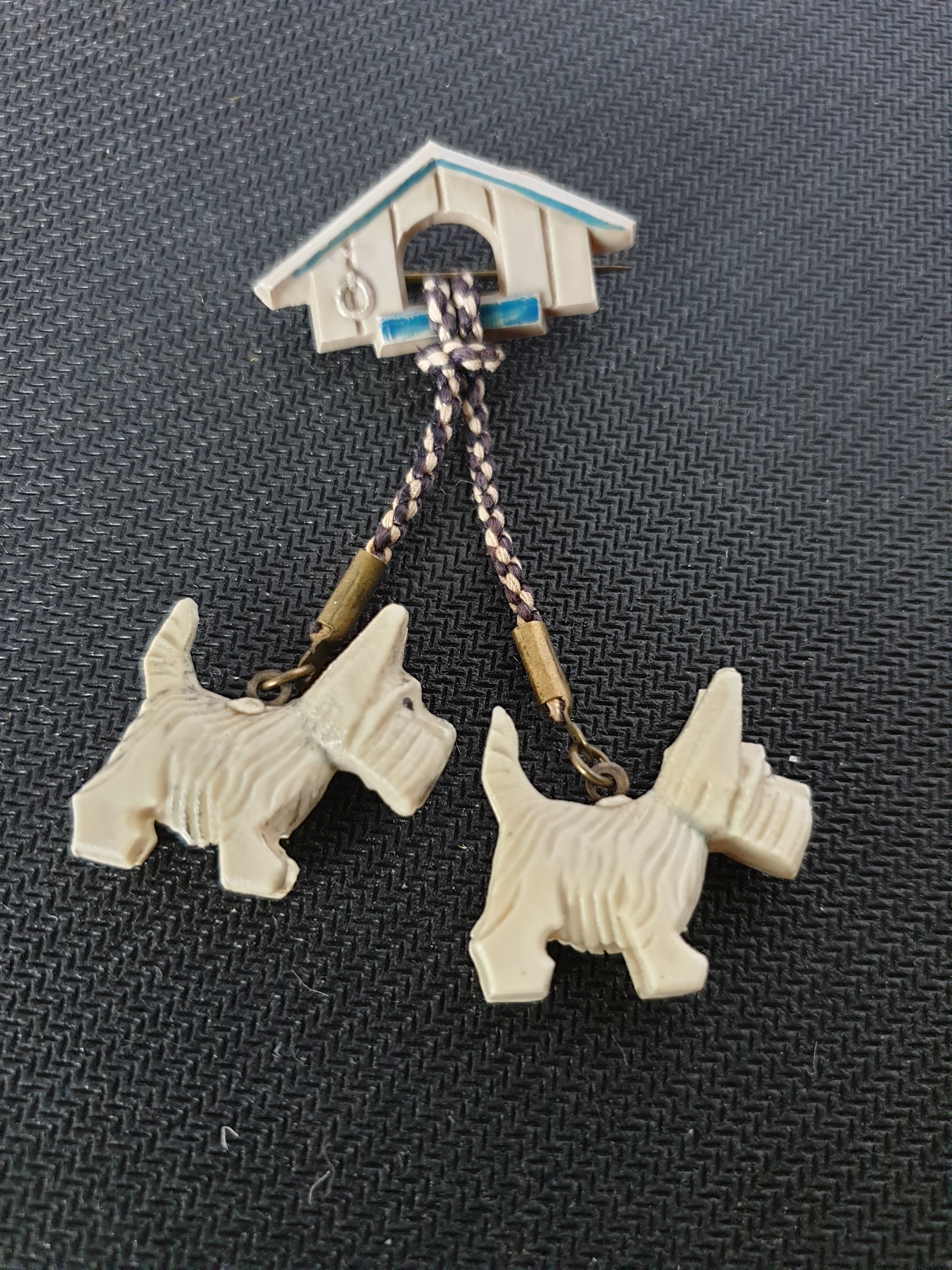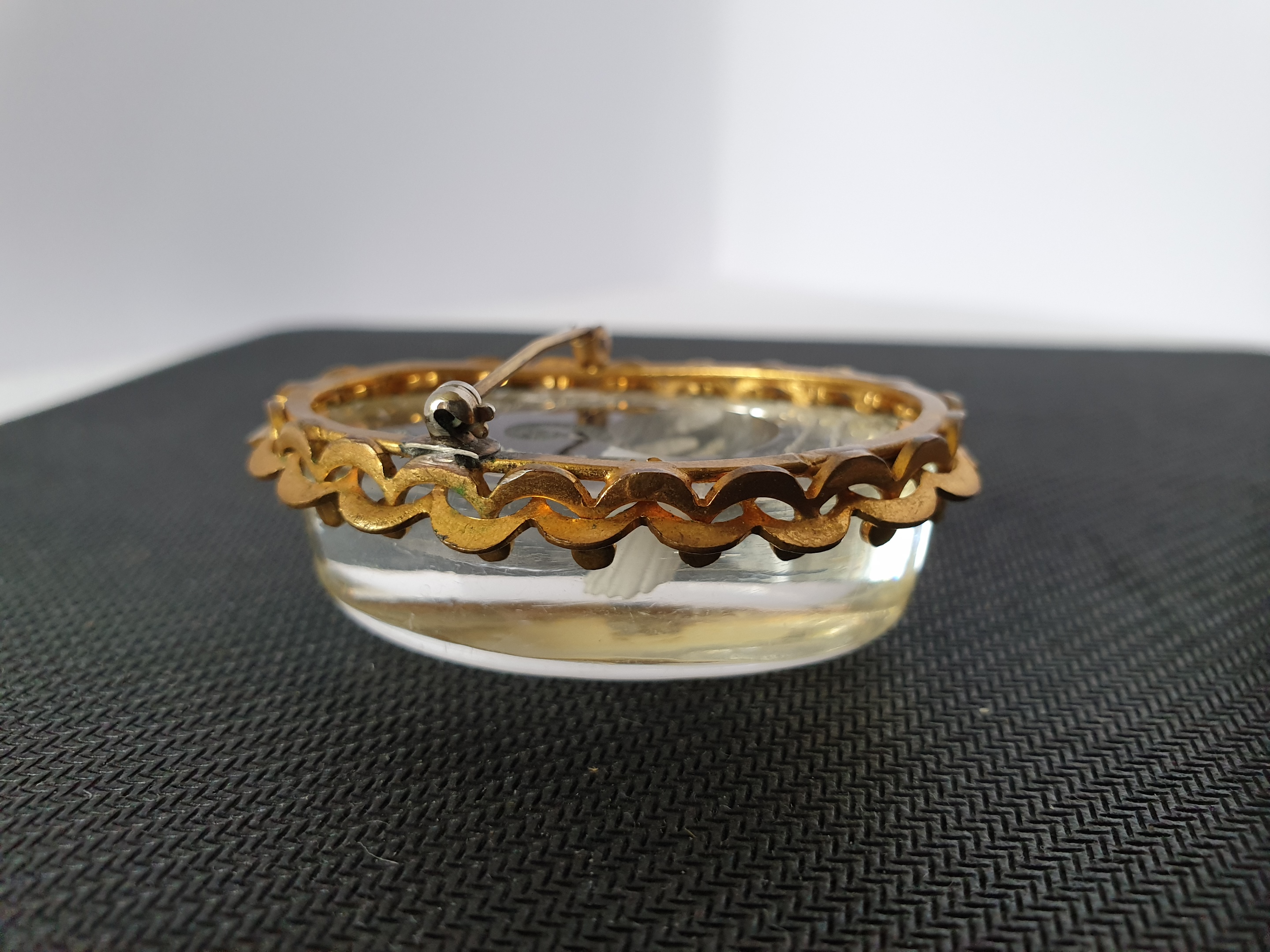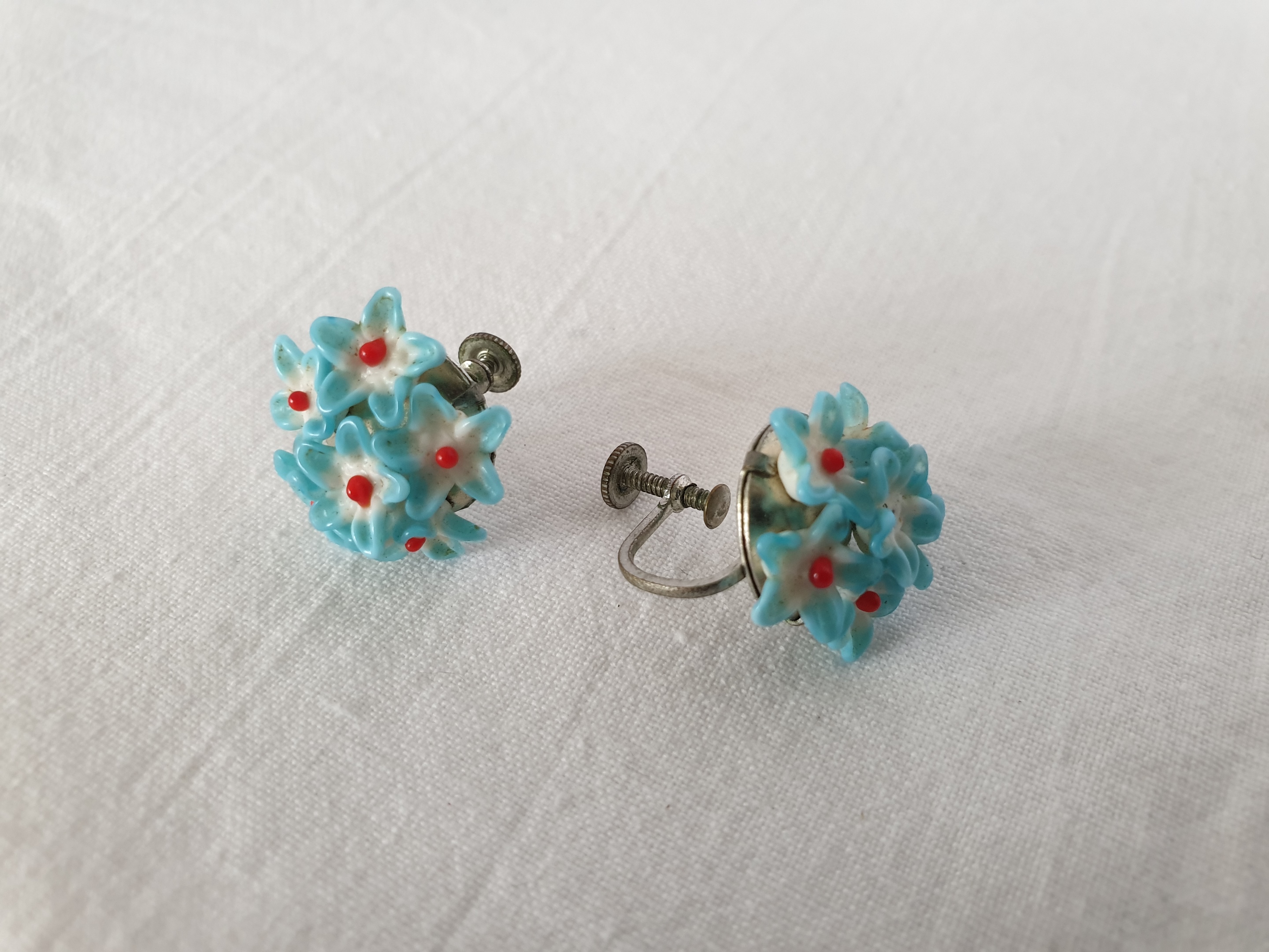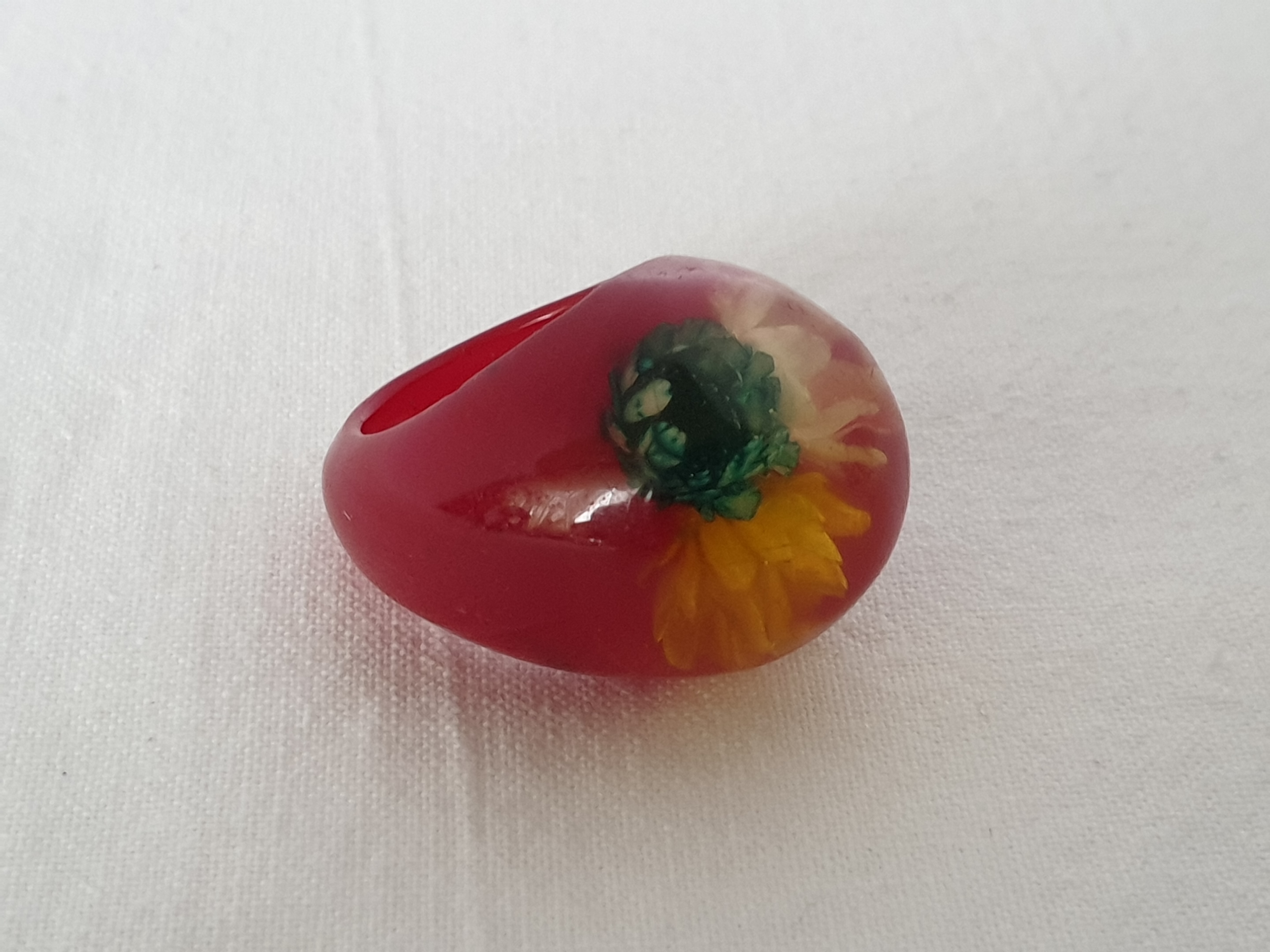 Ytterligare ett sånt där smycke som ser betydligt nyare ut än vad det är. Det här coola armbandet förälskade jag mig i, säljaren skrev 60-tal och jag trodde kanske att det kunde varadet men till min glädje visade det sig att det var betydligt äldre. Det första jag upptäckte var att ”tulpanen” var ditsatt med skruvar, brukar vara ett säkert tecken på art deco/30-tal, och då var jag så klart tvungen att testa för bakelit också och det var det! Det stora problemet är bara att säljaren visserligen slagit in det i bubbelplast och skickat i en bubbelplast-påse men det hade behövt en kartong – blivit en spricka rakt över ett blad… Sitter fast (i alla fall ännu så länge) men ändå synd på ett vackert väldigt gammalt smycke. Jag önskar att folk kunde lära sig stt äldre plast är skör och behöver skyddas från tryck och stötar, suck.