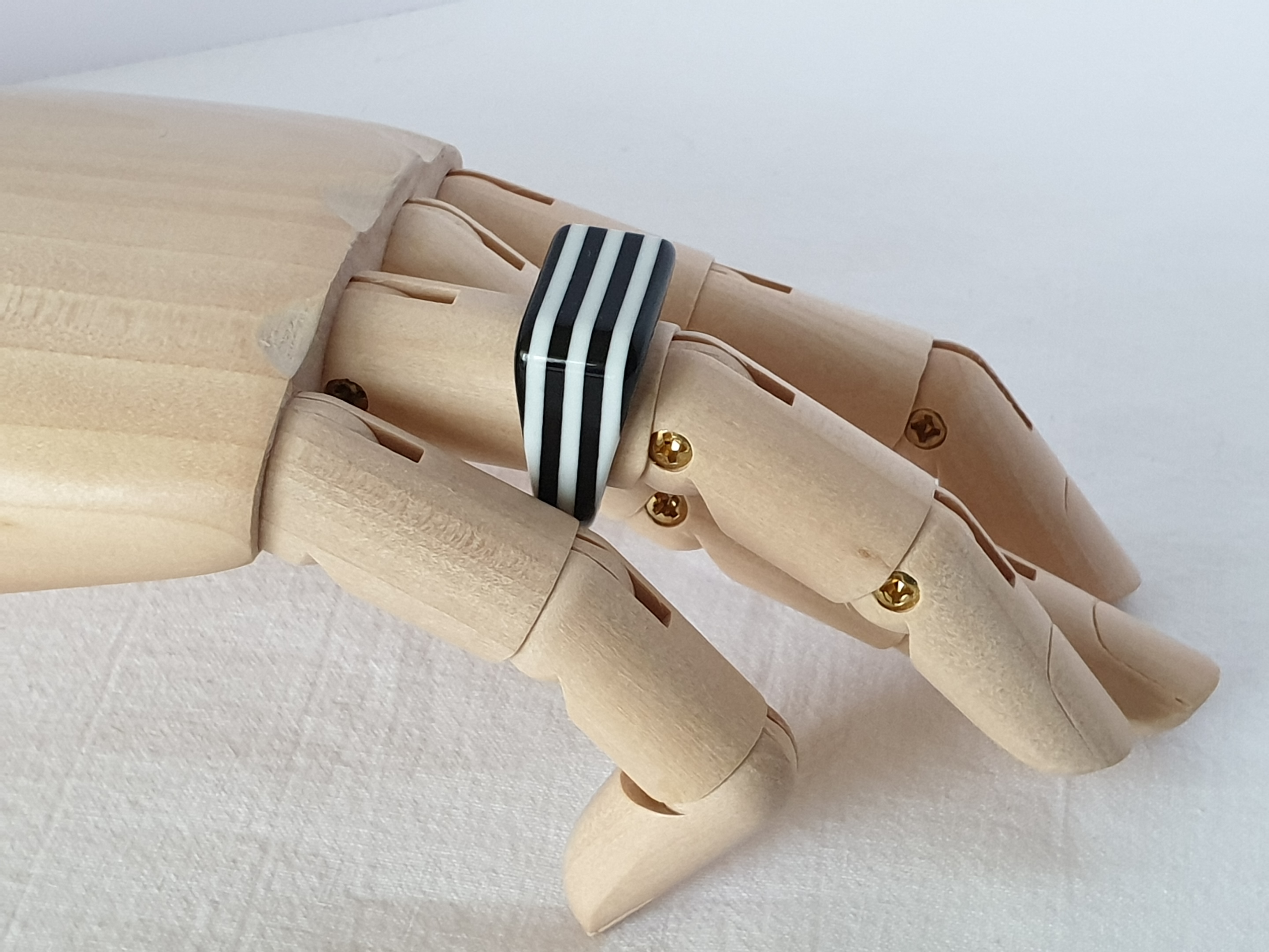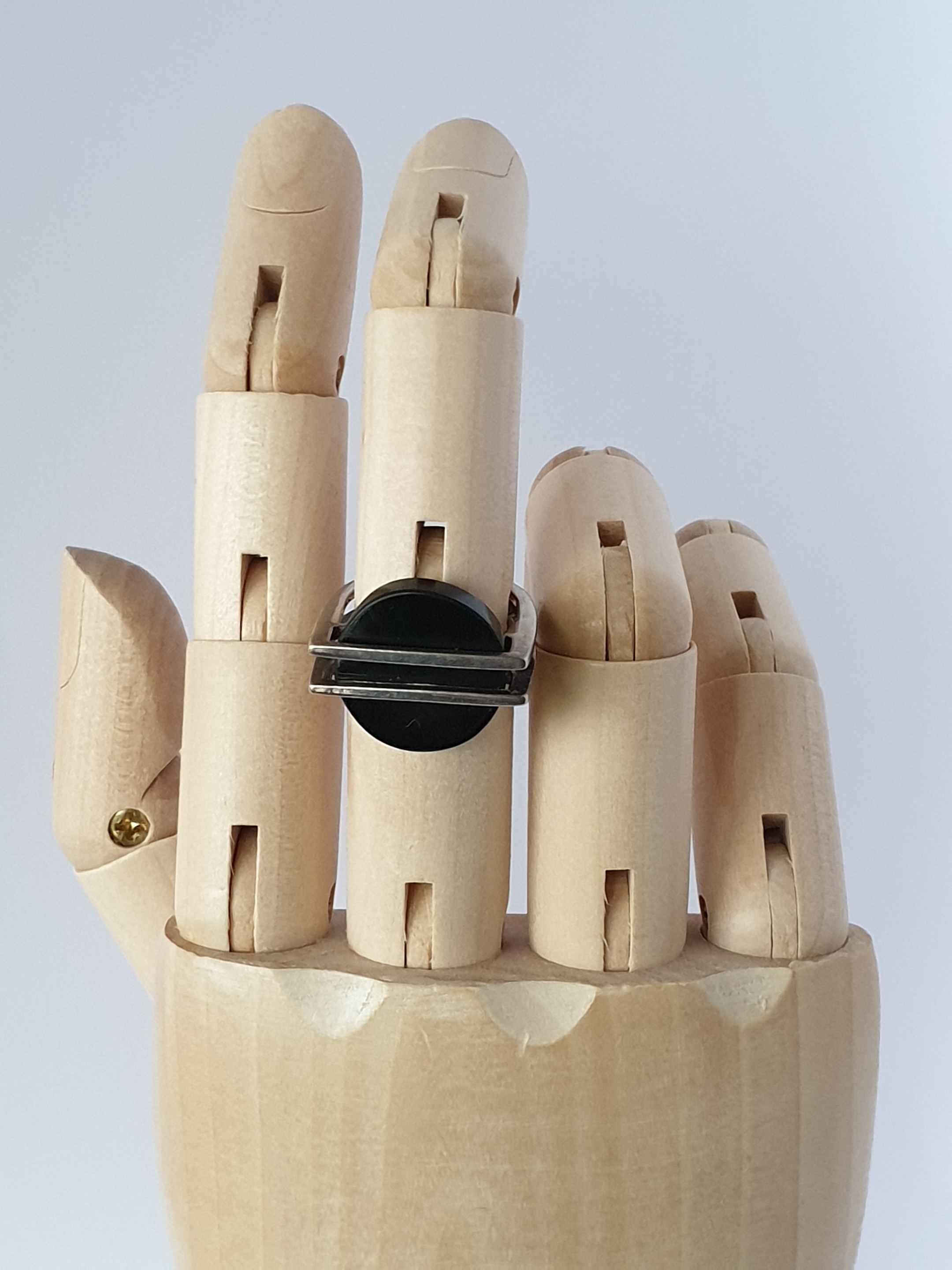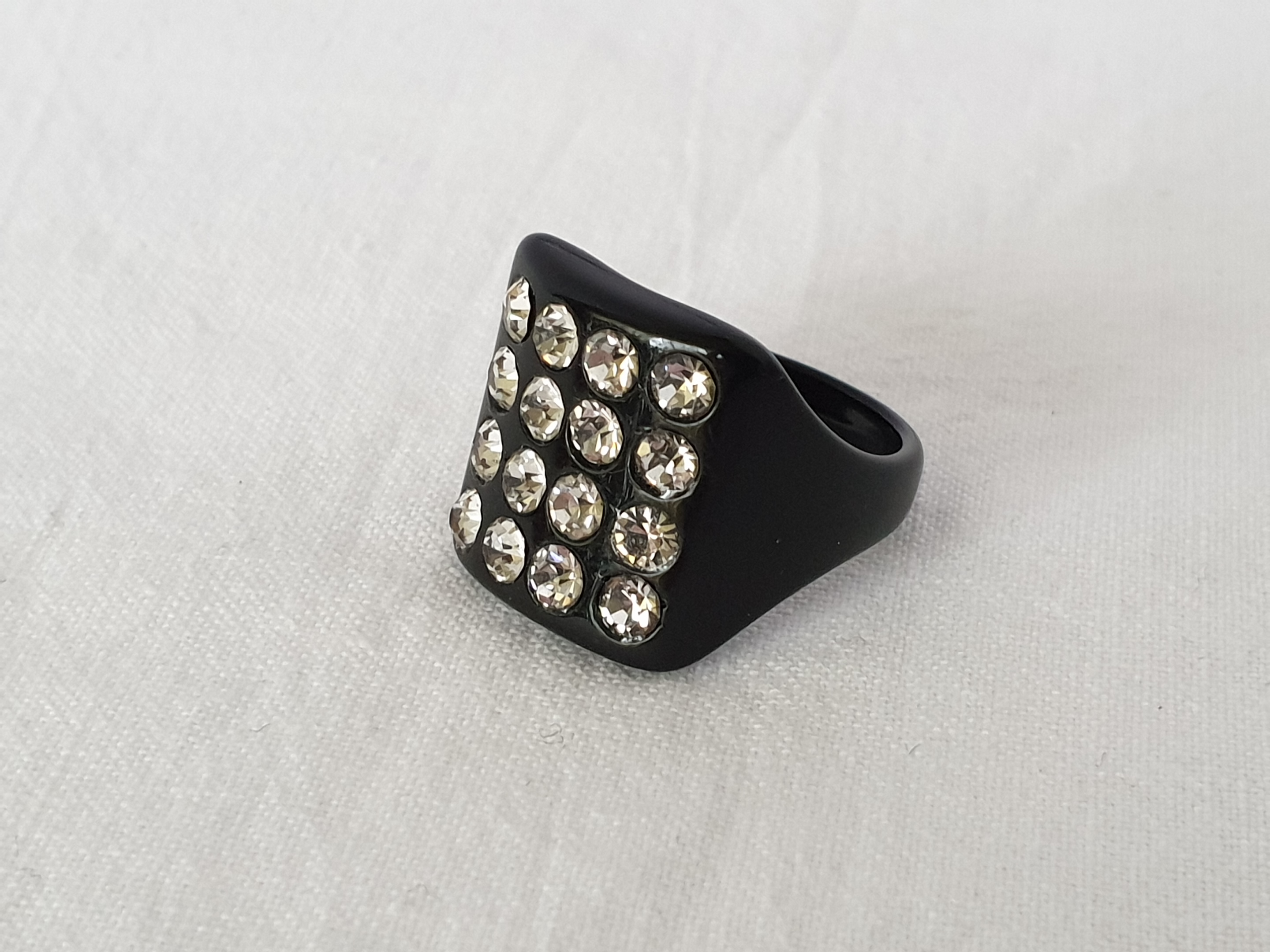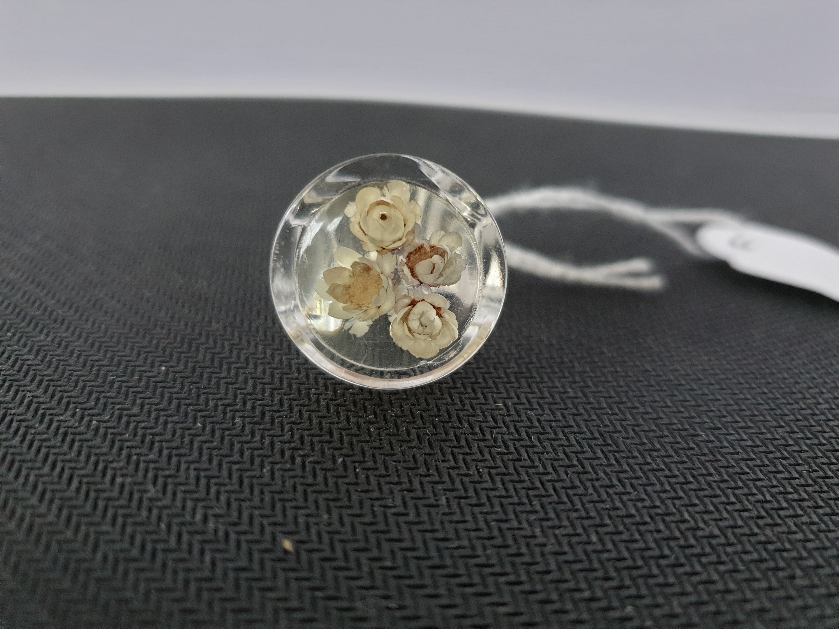 Ytterligare ett sånt där smycke som ser betydligt nyare ut än vad det är. Det här coola armbandet förälskade jag mig i, säljaren skrev 60-tal och jag trodde kanske att det kunde varadet men till min glädje visade det sig att det var betydligt äldre. Det första jag upptäckte var att ”tulpanen” var ditsatt med skruvar, brukar vara ett säkert tecken på art deco/30-tal, och då var jag så klart tvungen att testa för bakelit också och det var det! Det stora problemet är bara att säljaren visserligen slagit in det i bubbelplast och skickat i en bubbelplast-påse men det hade behövt en kartong – blivit en spricka rakt över ett blad… Sitter fast (i alla fall ännu så länge) men ändå synd på ett vackert väldigt gammalt smycke. Jag önskar att folk kunde lära sig stt äldre plast är skör och behöver skyddas från tryck och stötar, suck.