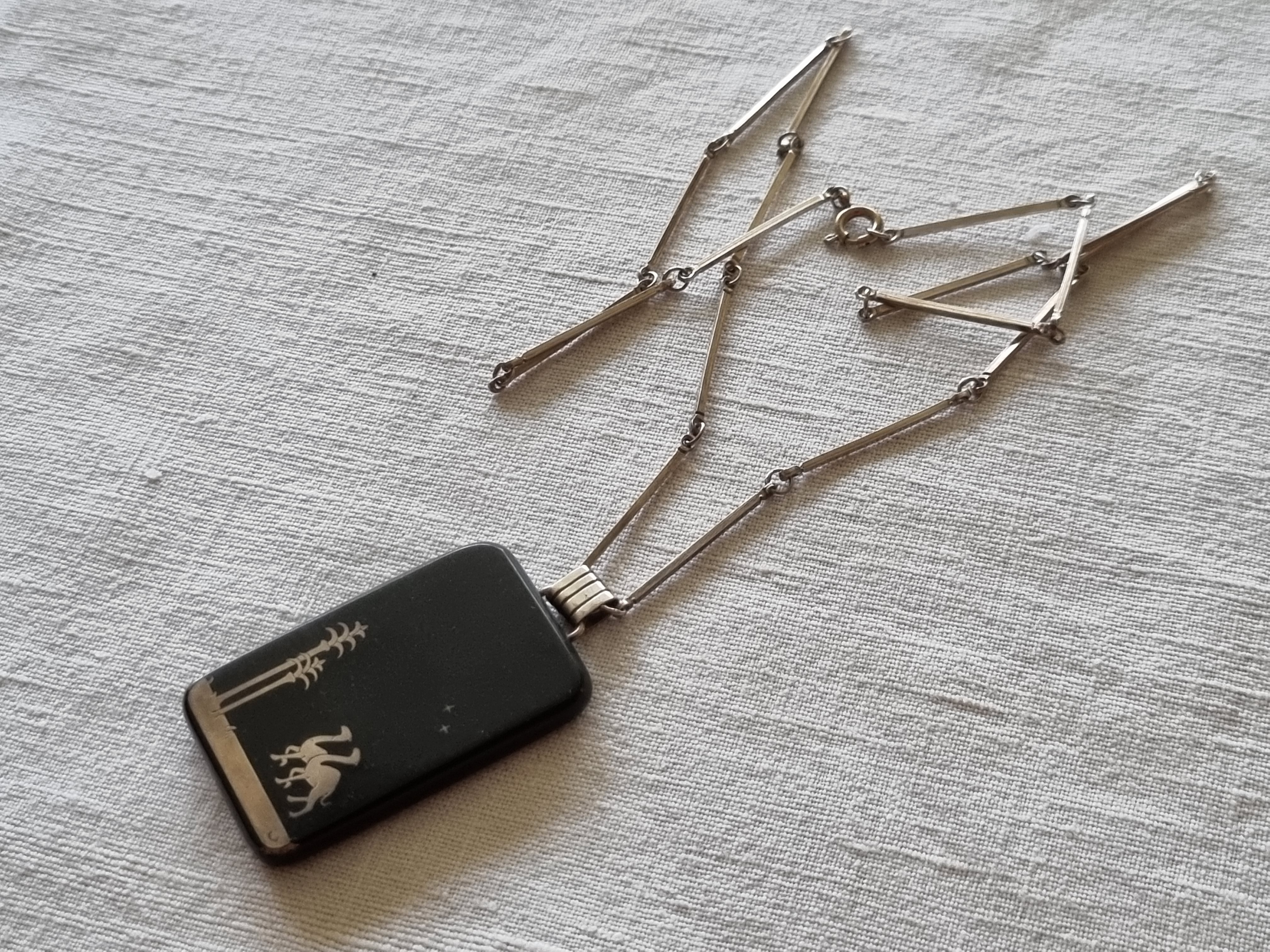 Letat i flera år efter ett smycke av Titti Wendt, ända sedan jag lärde mig om Perstorps tillverkning av Isolit – och nu har jag äntligen lyckats hitta ett halsband som jag lyckades ropa in på auktion.