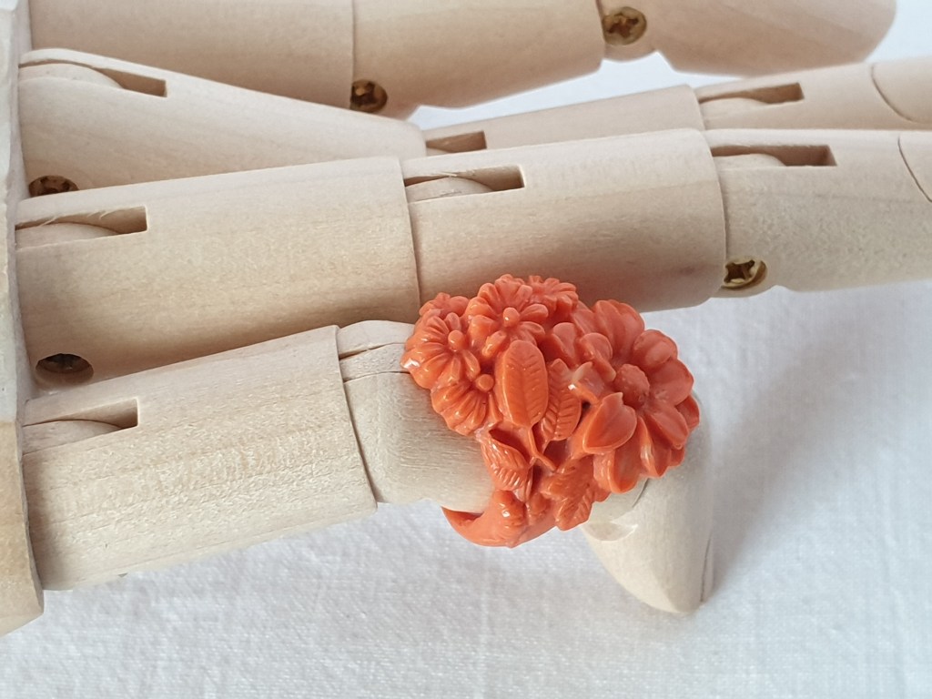 Celluloid. Sent 1800-tal utvecklades celluloid, tidigt ersatte eller skulle likna dyra material som elfenben, sköldpaddsskal, korall och liknande. Celluloid utvecklades mycket under årens lopp och har använts i smycken fram på 50-talet.