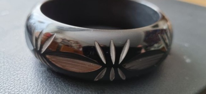 Är tillbaka på mitt största ”hatobjekt” när det gäller plastsmycken och ni som brukar läsa vet att det kommer att handla om bakelit – eller snarare allt som inte är bakelit. Det har blivit än viktigare eftersom smycken i bakelit numera har blivit väldigt dyra, även här i Sverige. Och när någonting blivit dyrt är det så klart ännu fler som påstår att ett plastsmycke är i bakelit. Jag kan mycket väl betala bra för ett fint smycke i bakelit men köper jag det osett, dvs på nätet, skulle jag aldrig köpa ett plastsmycke för dyra pengar om jag inte litade på att säljaren vet/kan och det är tyvärr fortfarande alldeles för få som faktiskt kan svara på mina frågor.