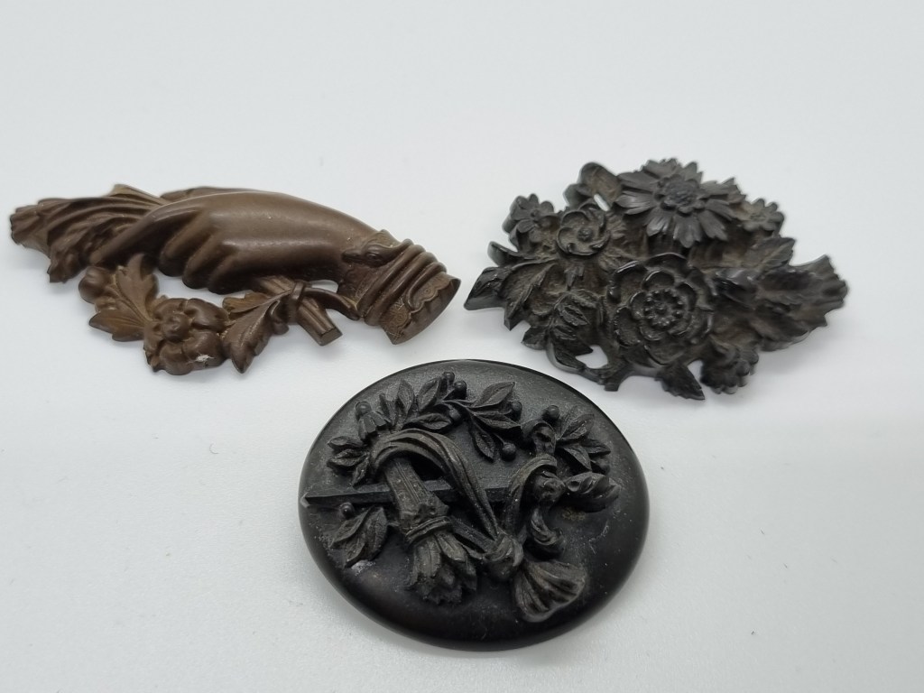 Parallellt med celluloiden blev sorgesmycken moderna/populära i mängder med material med det enda gemensamma att de var svarta eller svartbruna. Många av dessa material räknas också som plastens föregångare, guttaperka, ebonit, vulcanit och liknande. Även om dessa smycken är svarta/brunsvarta är det väldigt ovanligt att de är i bakelit, det finns men de är ovanliga. Sorgesmycken behöll sin popularitet en bit in på 1900-talet och sen försvann även många av de material som de gjordes av.