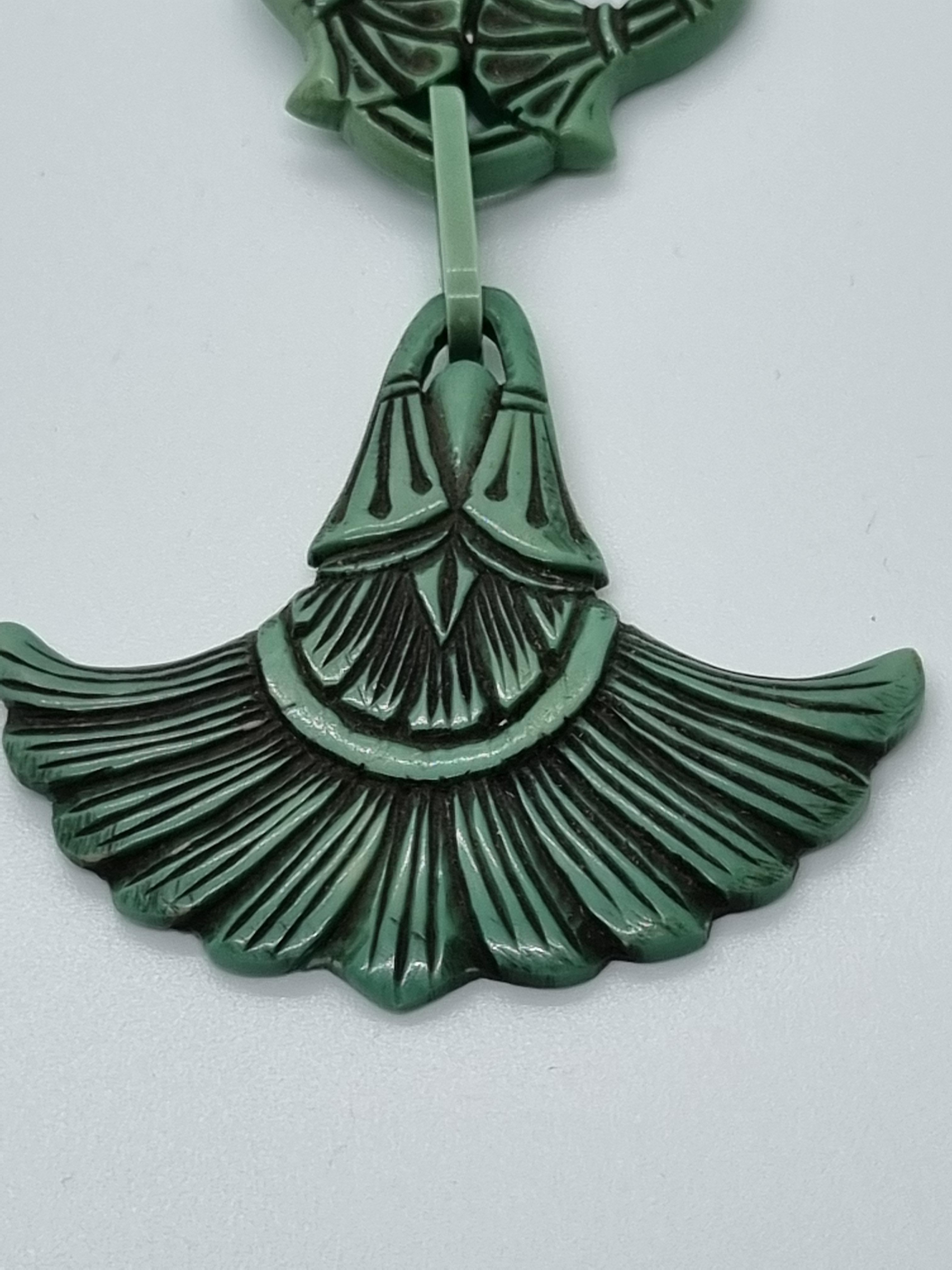 I början av 1900-talet uppfanns bakelit (1907) men började inte användas till smycken förrän sent 20-tal och hade sin storhetstid under 30-talet för att sedan i stort sett helt konkurreras ut av andra plastmaterial som var lättare att arbeta med på 40-talet. Under samma tid som bakeliten utvecklades många olika material som liknar bakelit, galalith (användes bla i Tyskland och Frankrike), isolit (uppfanns och tillverkades av Perstorp Sverige) bland många andra. Som du ser nedan är de nödvändigtvis inte helt enkelt att skilja olika plastsorter åt…