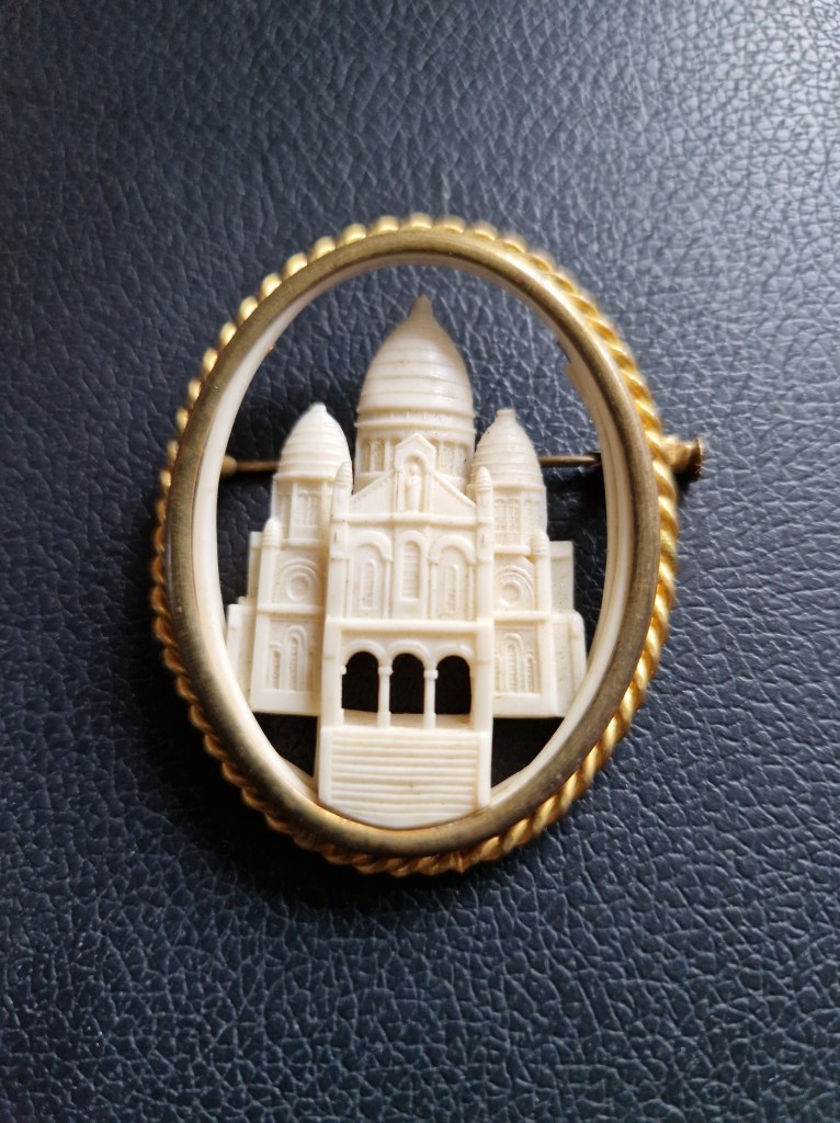 Även om jag har många, dessutom redan en variant av Sacré Coeur så kunde jag inte låta bli att köpa den här broschen, välaktad med väldigt fina detaljer.