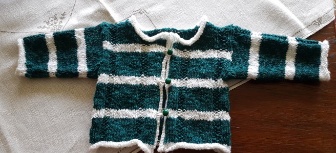 Det är väl inte det finaste jag stickat, man blir ju tyvärr lite ringrostig när man inte stickat på länge, men bebisar växer då fort så det gör kanske inte så mycket. Jag får sticka något större nästa gång.