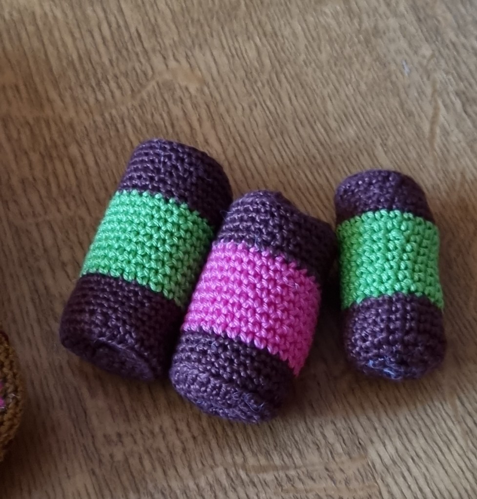 Det finns mängder med beskrivningar om man googlar men för att nämna några har jag hämtat min inspiration från bla Fridas virk- och stickblogg, litenvirktant.se och Drops Design, garnstudio.com. Nu är jag ju som jag är, jag gör det mesta på fri hand, kanske använder jag mig av hur många maskor man ska börja med eller hur man ska öka för att få till formen men sen tröttnar jag på att följa mönstret och hittar på själv. Eller tar jag en bild och försöker helt enkelt göra en liknande. Den positiva sidan är att jag får använda min kreativitet, den negativa att jag aldrig riktigt kan göra två likadana eftersom jag skapar under tiden jag håller på och är väldigt dålig på att skriva ner vad och hur jag gör. Allt blir ju heller inte perfekt…