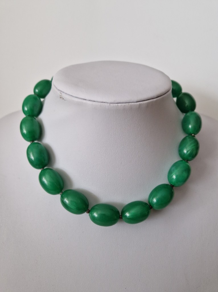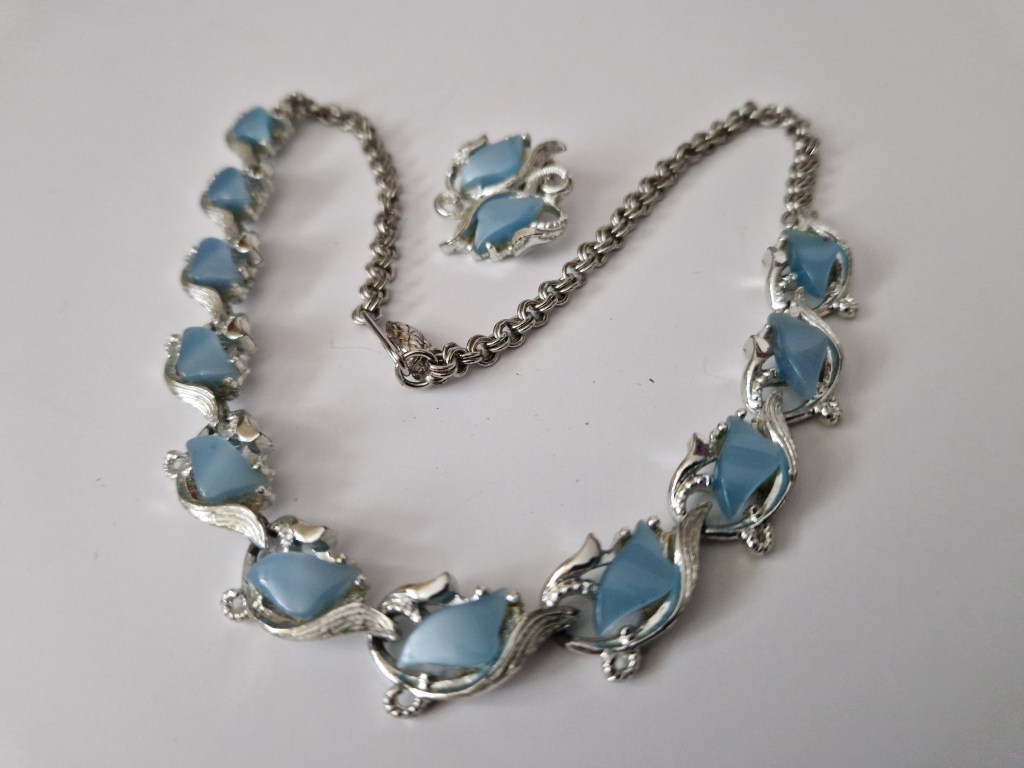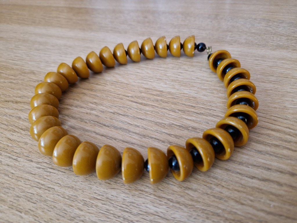 Har försökt att göra utställningen i åldersordning, skåp 1; från de äldsta fram till 1920-talet, skåp 2; 30/40-tal och skåp 3; 50/60-tal. Så exakt vetenskap är det inte men på ett ungefär. När det gäller 50/60-tal har jag mängder med örhängen och halsband som inte får plats i skåpet utan har fått stå överallt…