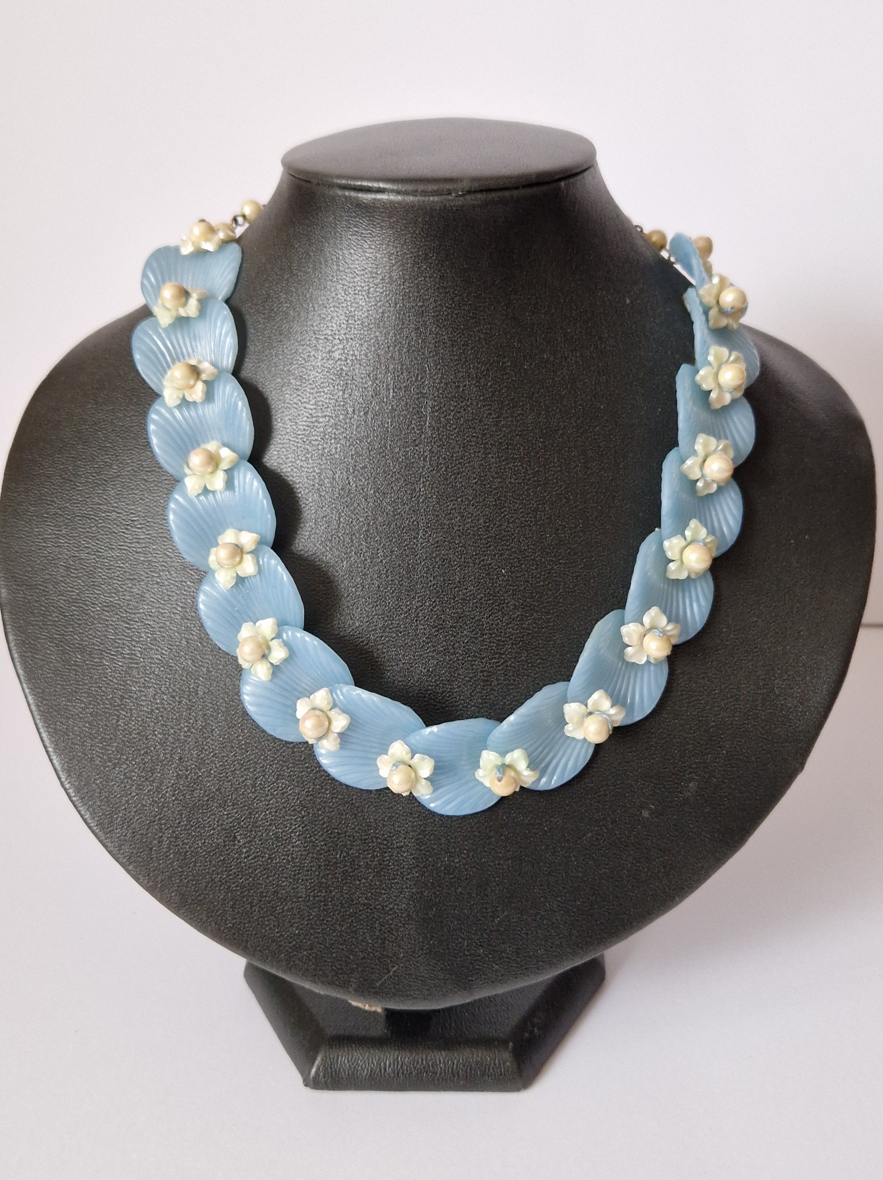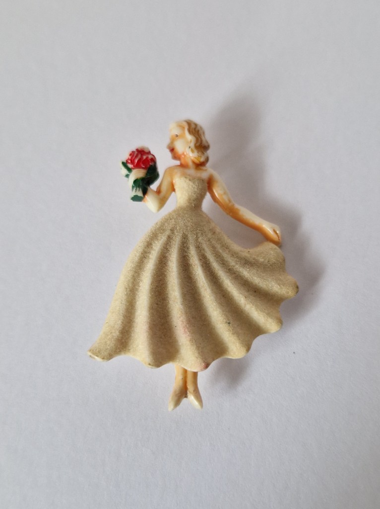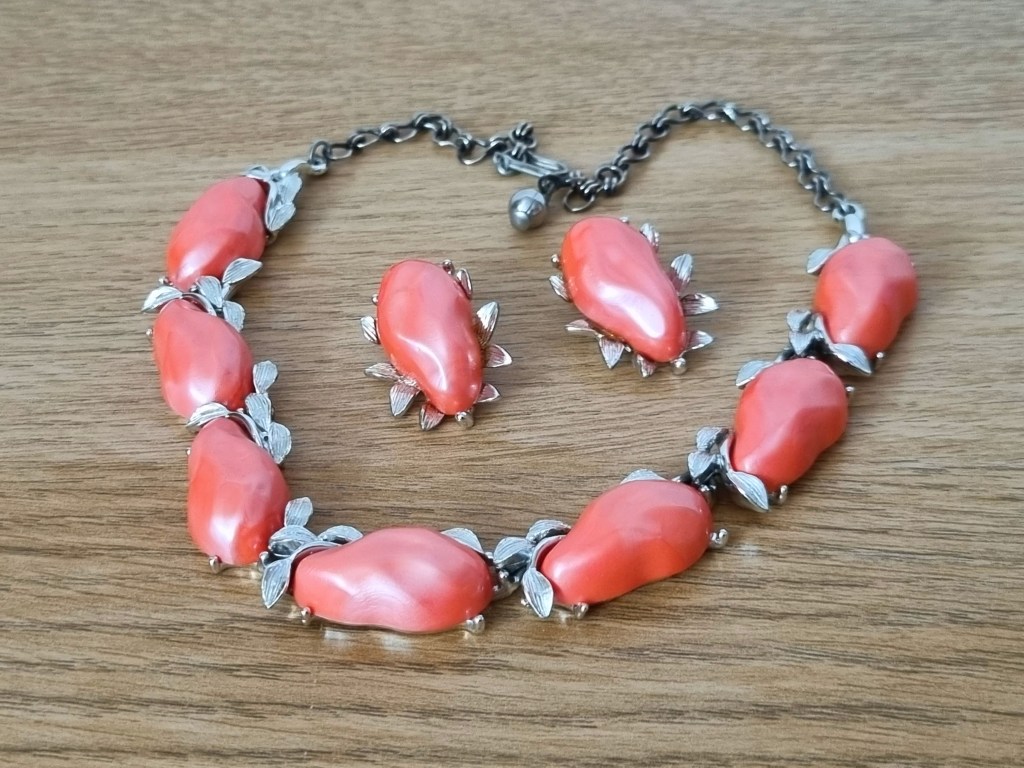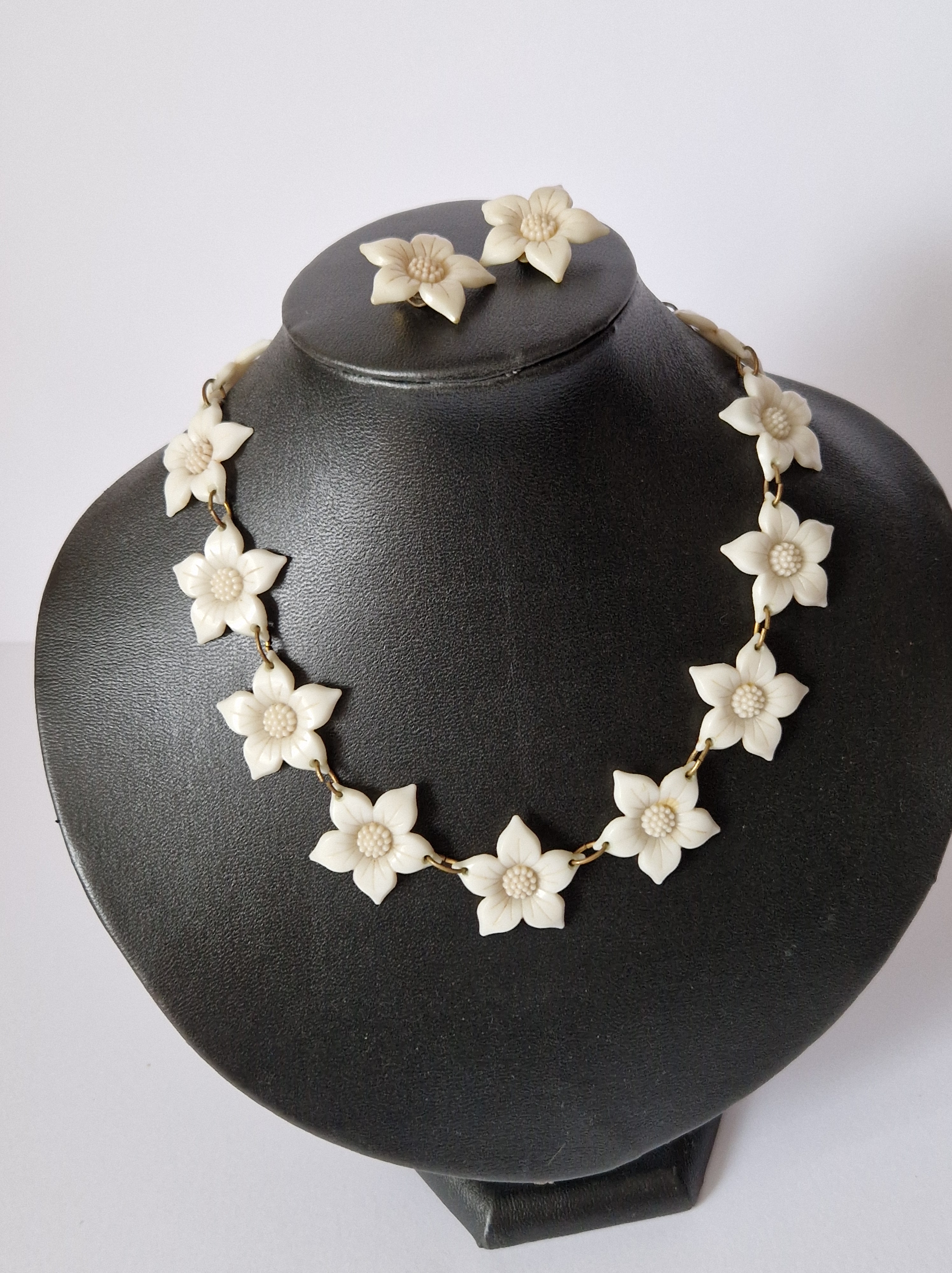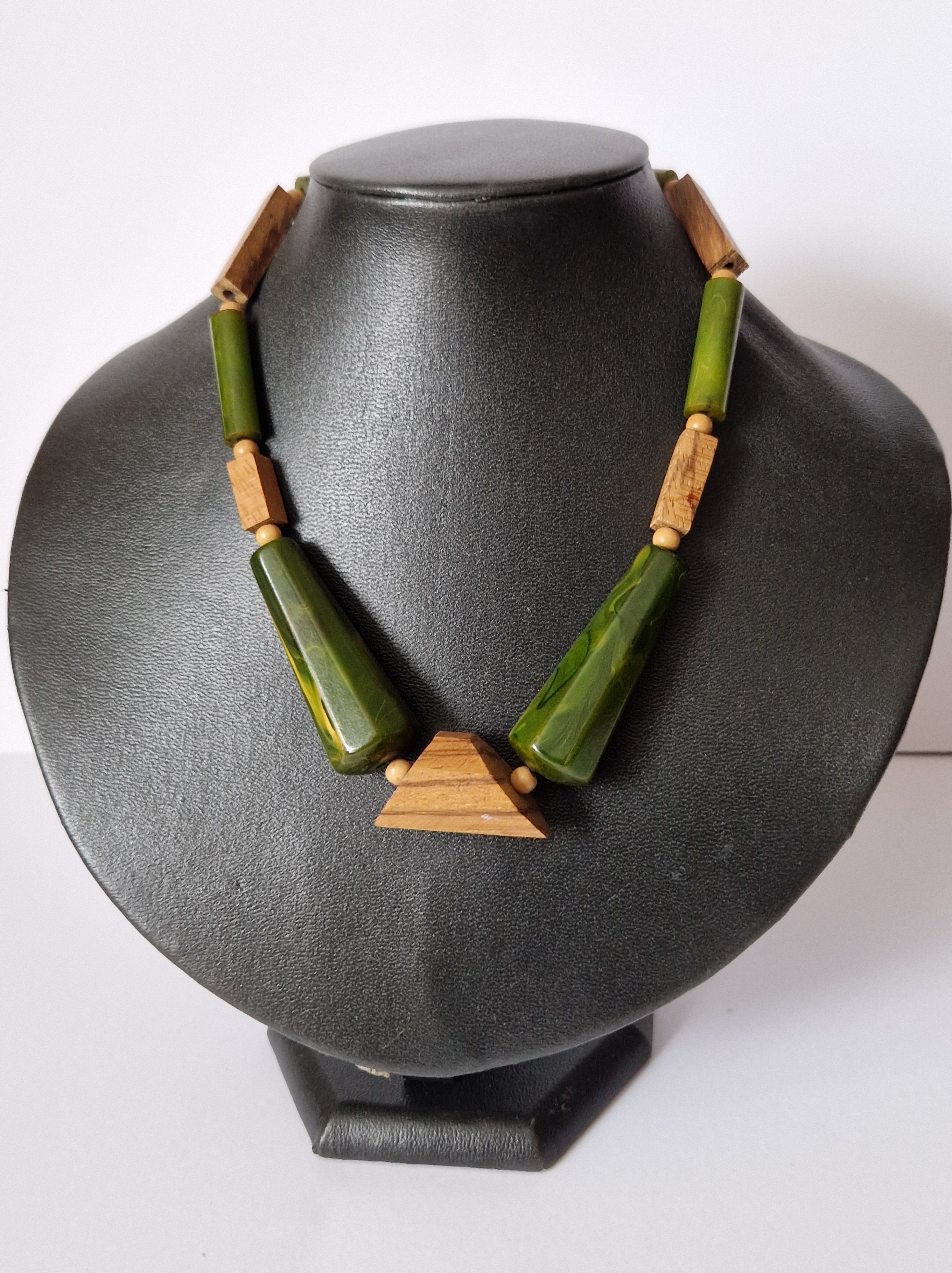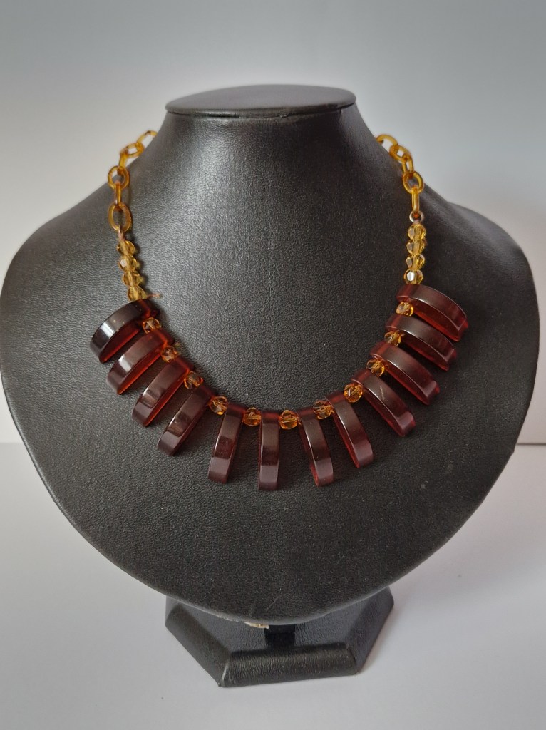 Smycken är tillverkade i mässing och galalith, en bakelit-liknande plast gjord på mjölk (!). Detta armband ingår i min samling. Har även två broscher med ”rätt” märkning.