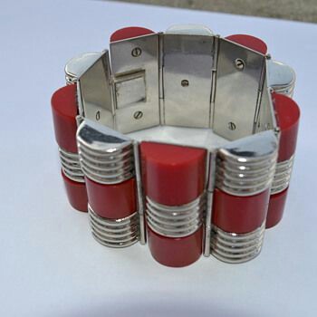 Och till sist ett antal i galalith, ett bakelit-liknande plastmaterial gjort på mjölk (!). Många av dem med metalldetaljer, många i väldigt typisk art deco-stil. Den längst upp till vänster är från Jean Painleve, Paris. Du kan läsa mer om honom i ett tidigare inlägg.