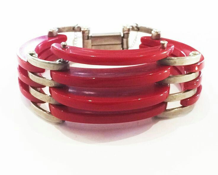 Jag har naturligtvis bara clips-broscher i plast, eller med plastdetaljer, i samlingen men det är lika vanligt att hitta dem i metall, oftast med stenar. Om de också existerade i ”finare” material, guld och silver med äkta stenar, är mer än vad jag vet men jag tror inte det var så vanligt eftersom jag aldrig sett någon. De var nog mest bijouterier som användes för att förändra eller piffa upp en klänning.
